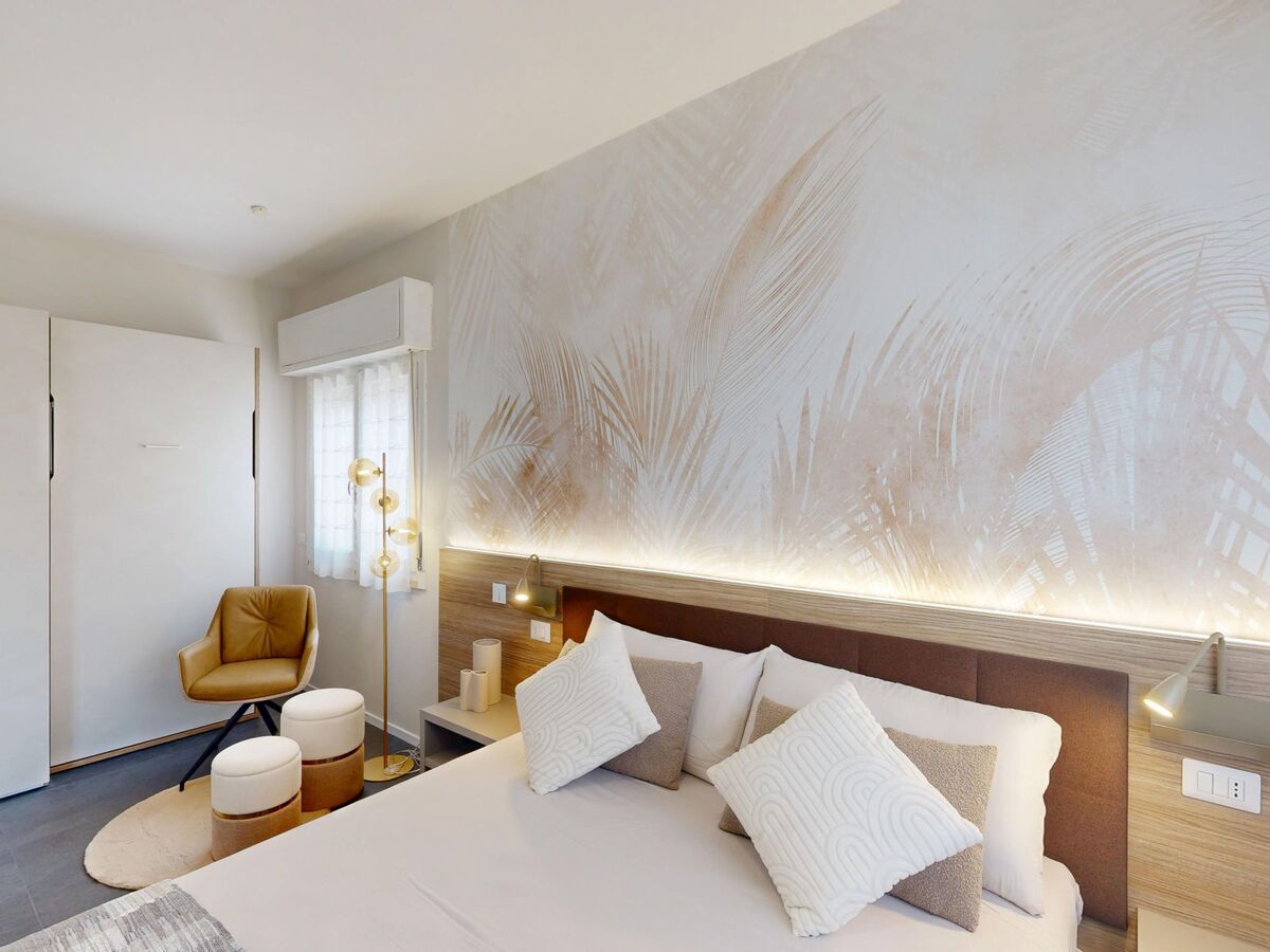 Complètement rénovée en 2025, aménagement moderne et plaisant: séjour/salle à manger avec baie vitrée avec 1 divan-lit (140 cm), TV (satellite).