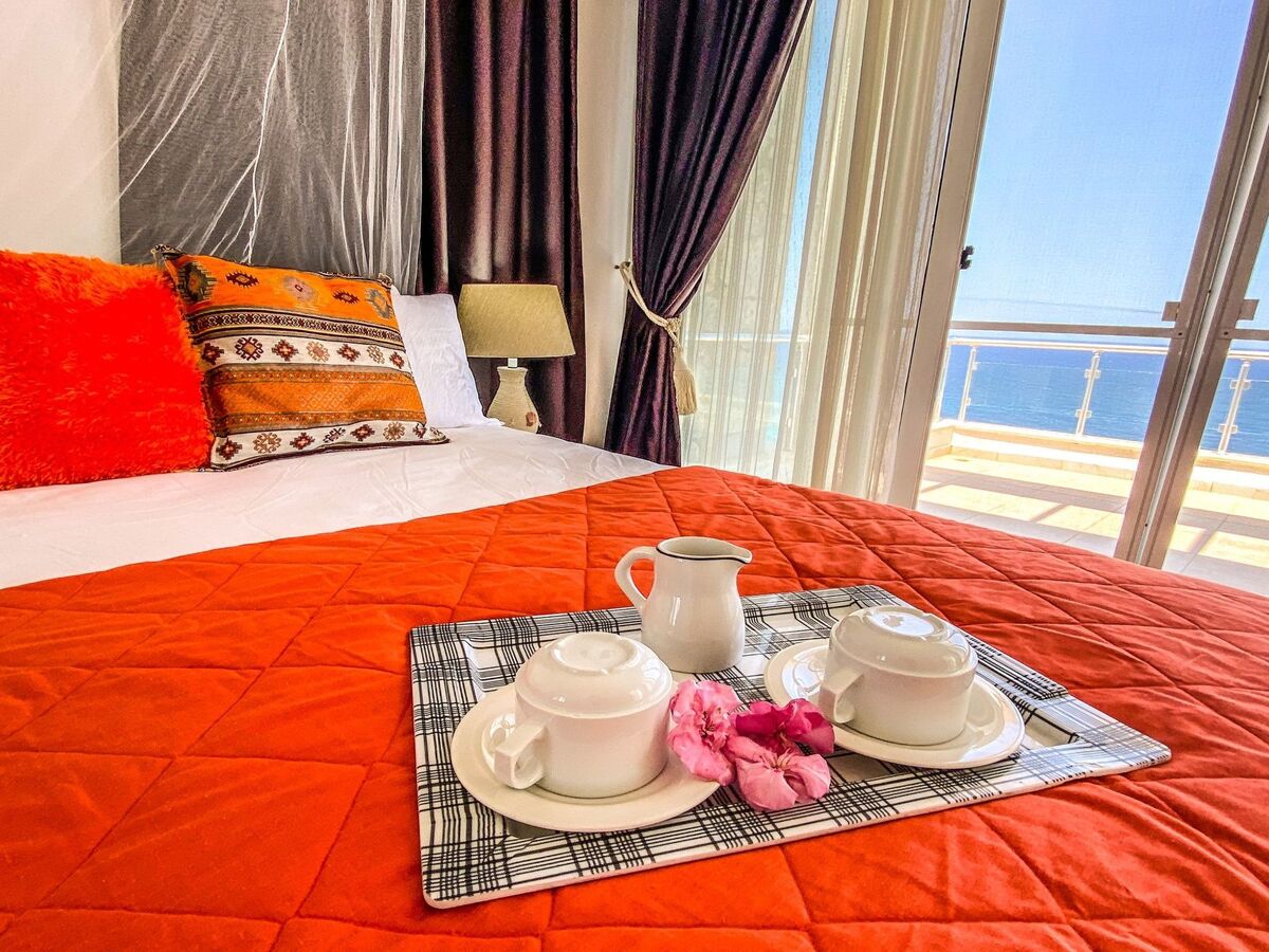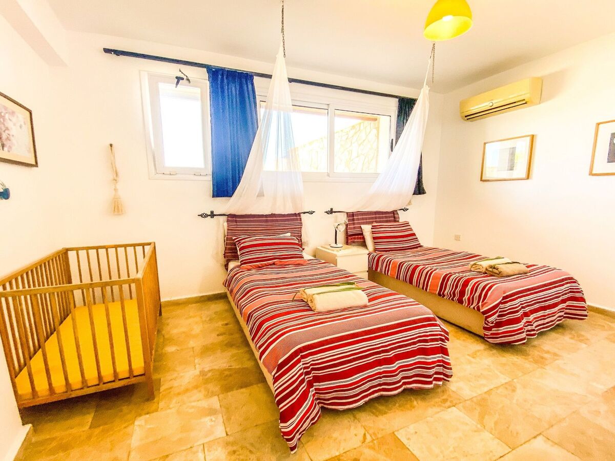 Other bedroom furniture : Master bedroom, 1st Floor, Fitted Mirrored wardrobes, AC, Hairdryer, bedside table with lamps, sea view, access to Terrace overlooking the sea.