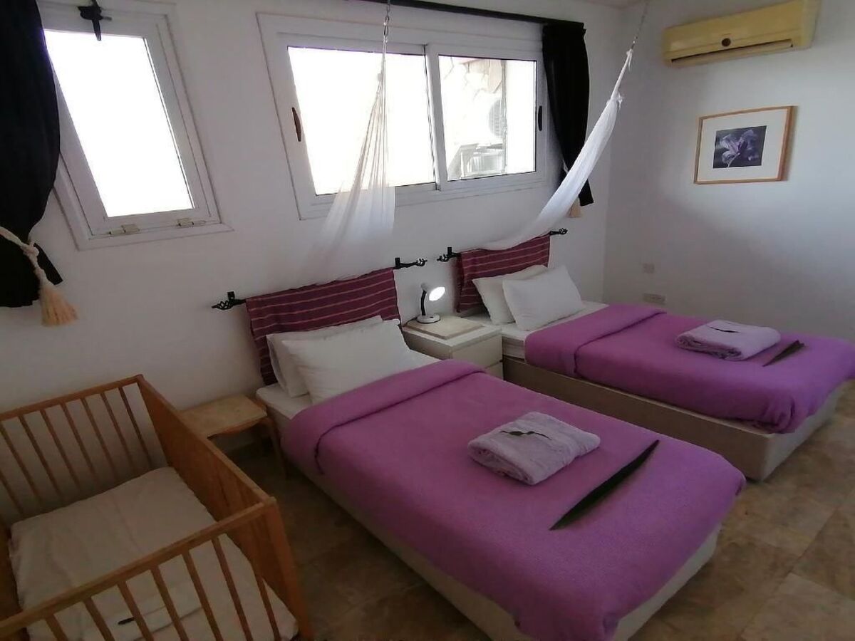 On the beach, there is also a volleyball court and a large restaurant with a beautiful view of the Mediterranean.