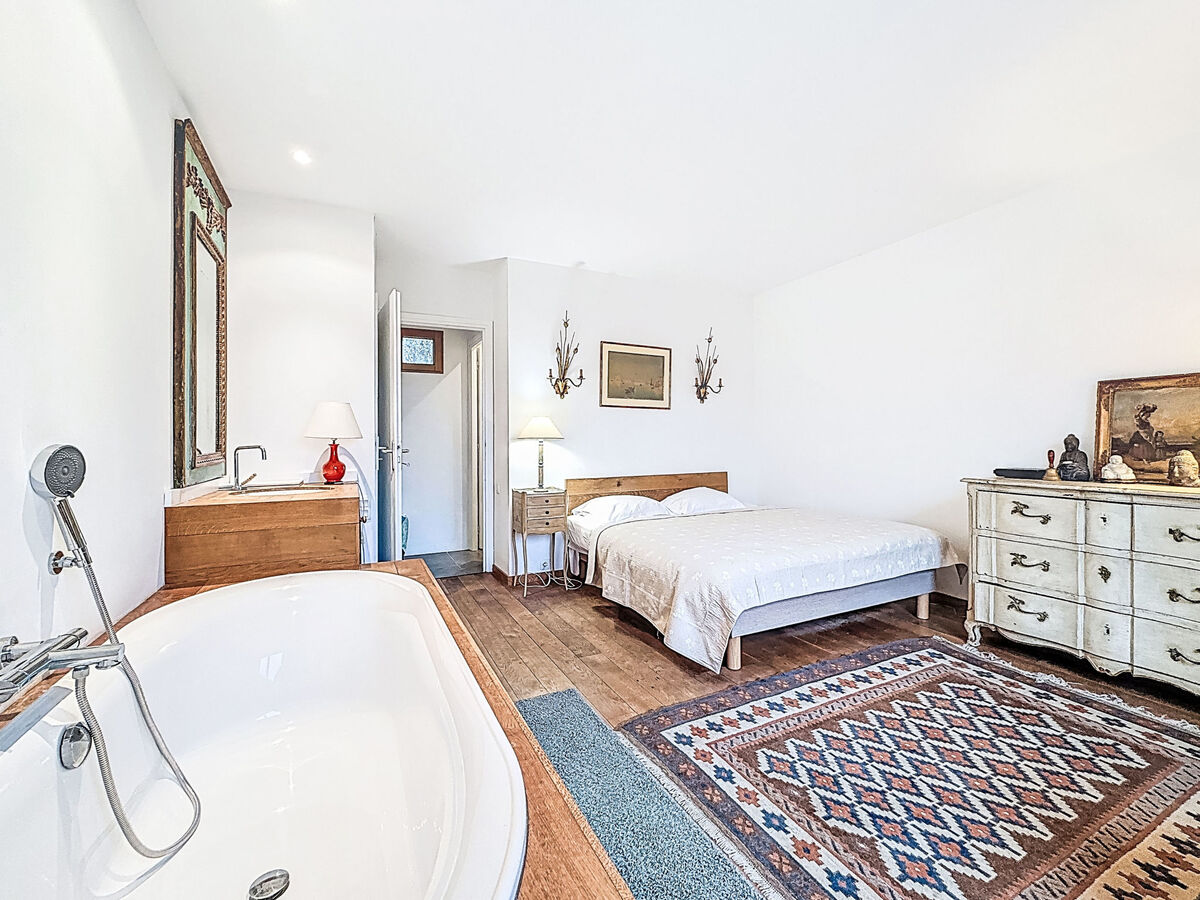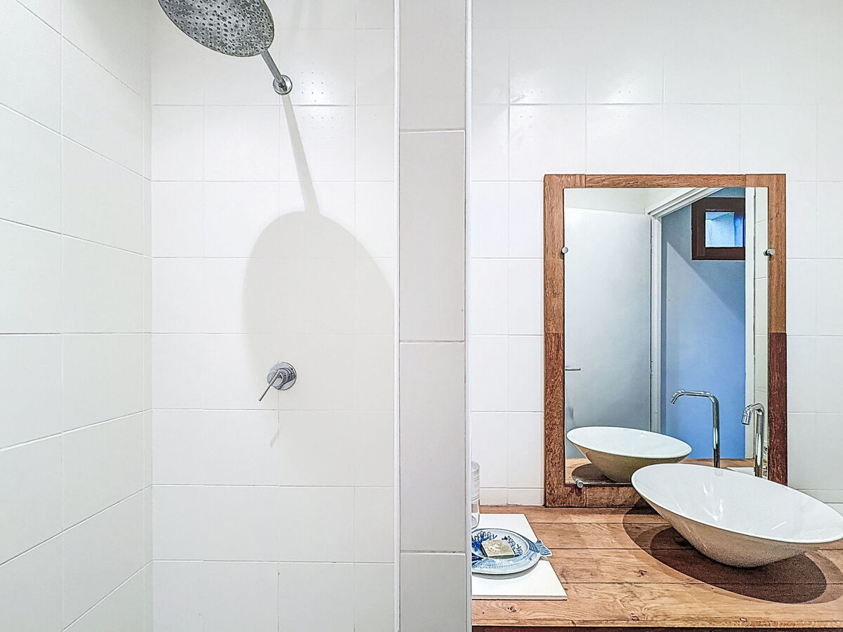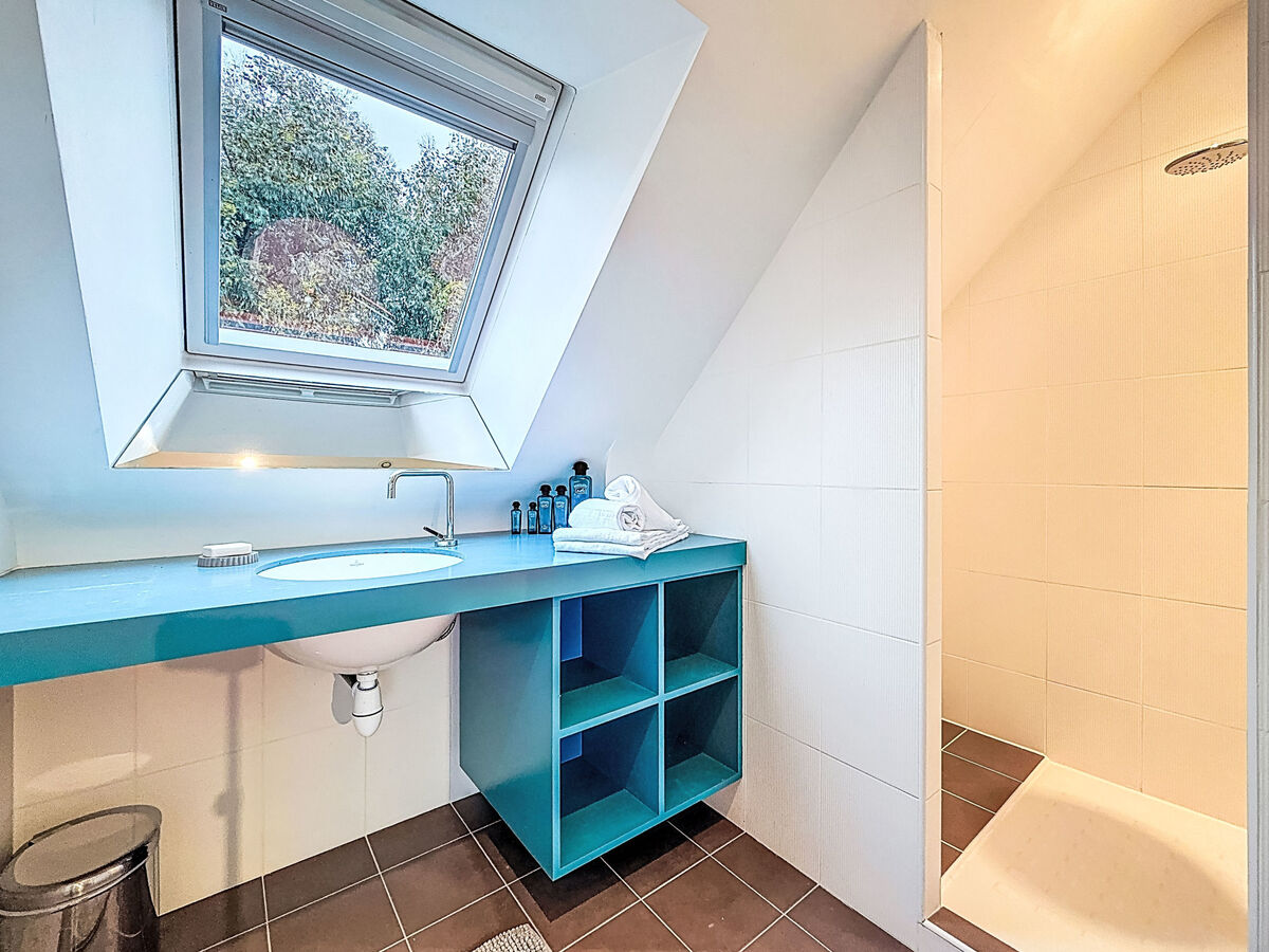 1 chambre avec 1 grand-lit (1 x 180 cm, longueur 200 cm), douche.