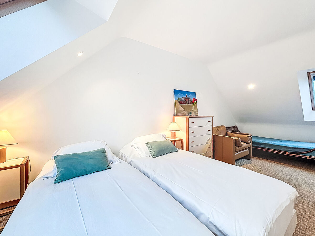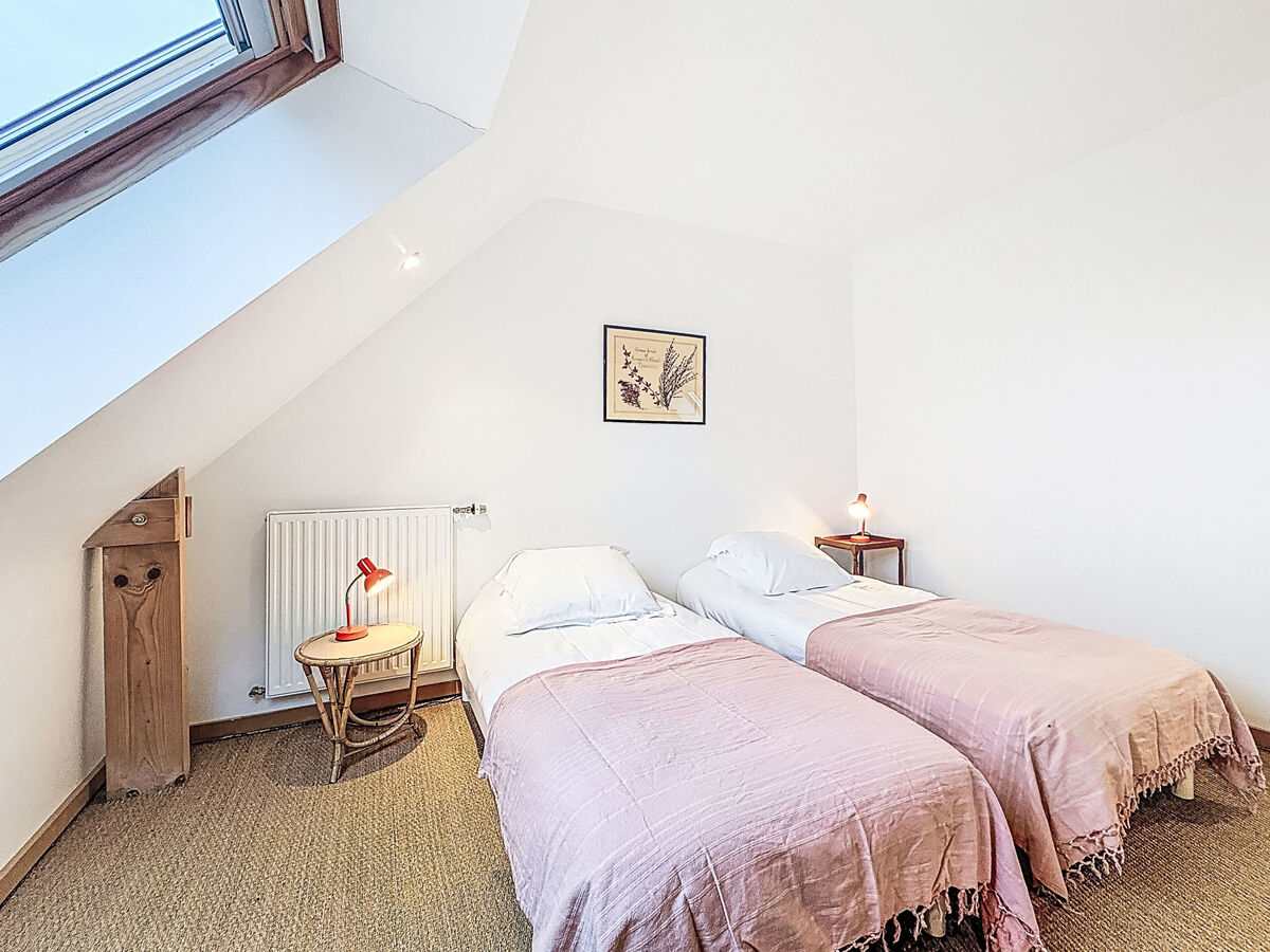 À l'étage supérieur: 3 chambres, chaque chambre avec: 2 lits (90 cm, longueur 190 cm).