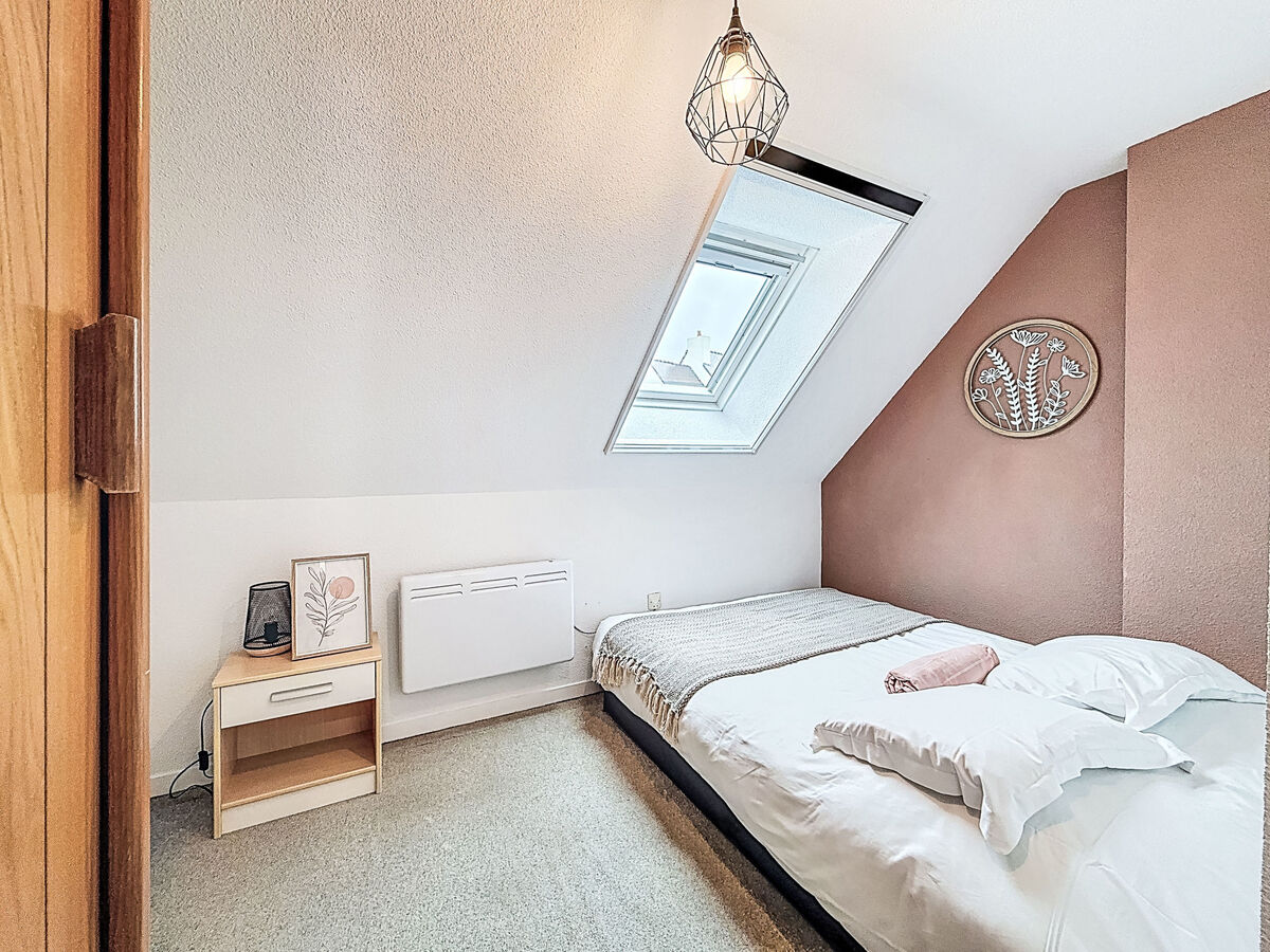 À l'étage supérieur: 2 chambres, chaque chambre avec: 1 grand-lit (1 x 140 cm, longueur 190 cm).