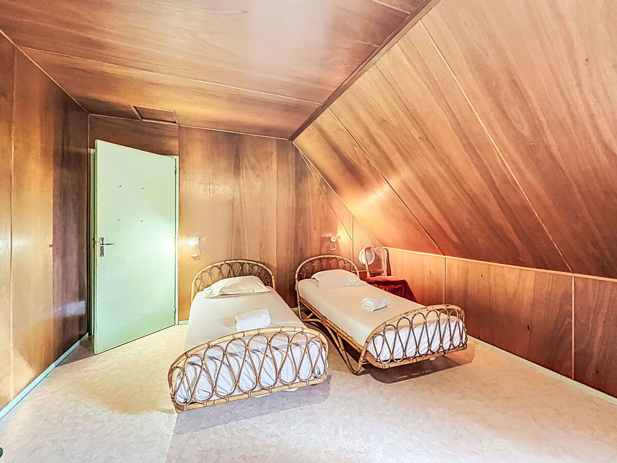 À l'étage supérieur: 1 chambre avec 2 lits (90 cm, longueur 190 cm).