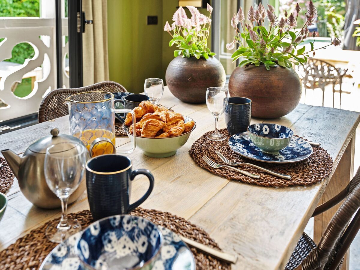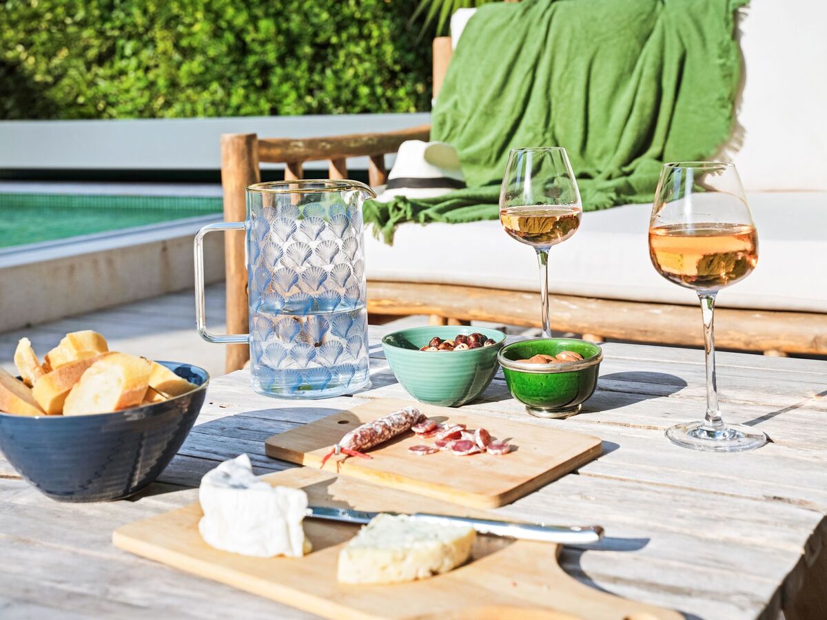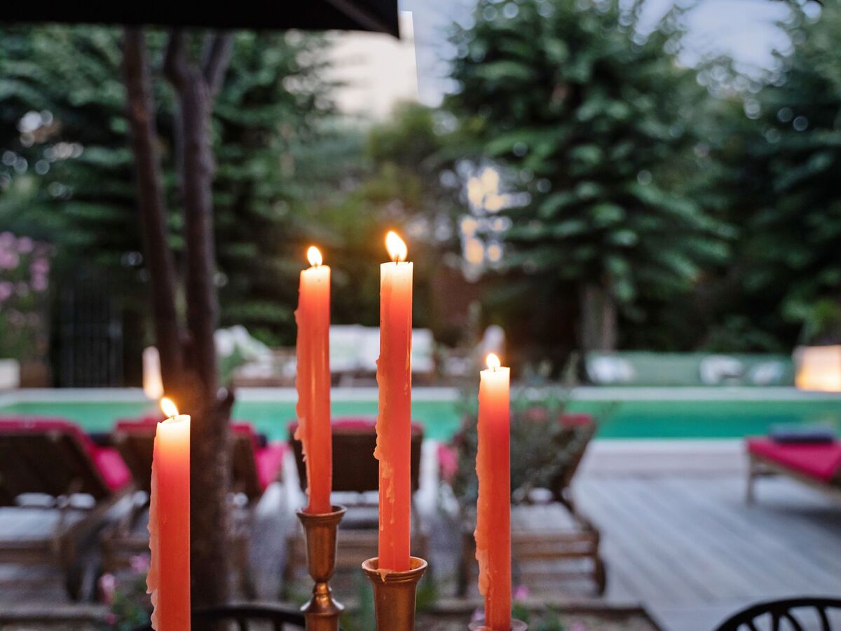 Meals together at long tables, swimming at night, drinks under the stars, children laughing in the garden.