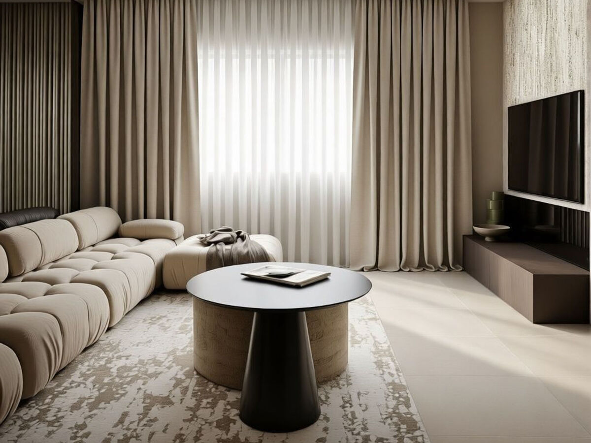 Aménagement de style: séjour/salle à manger avec TV (satellite) et air-conditionné.