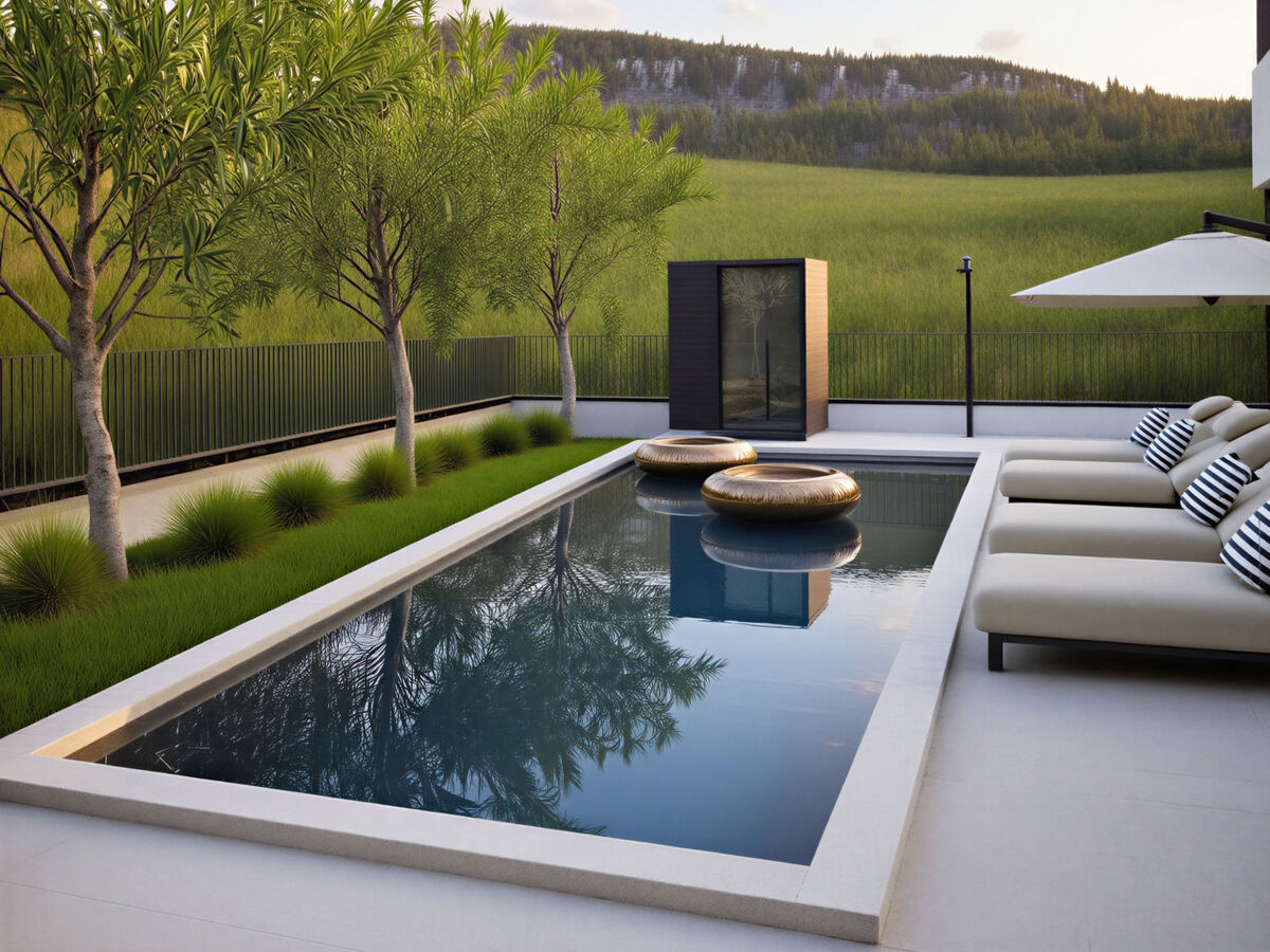 Piscine de forme irrégulière.