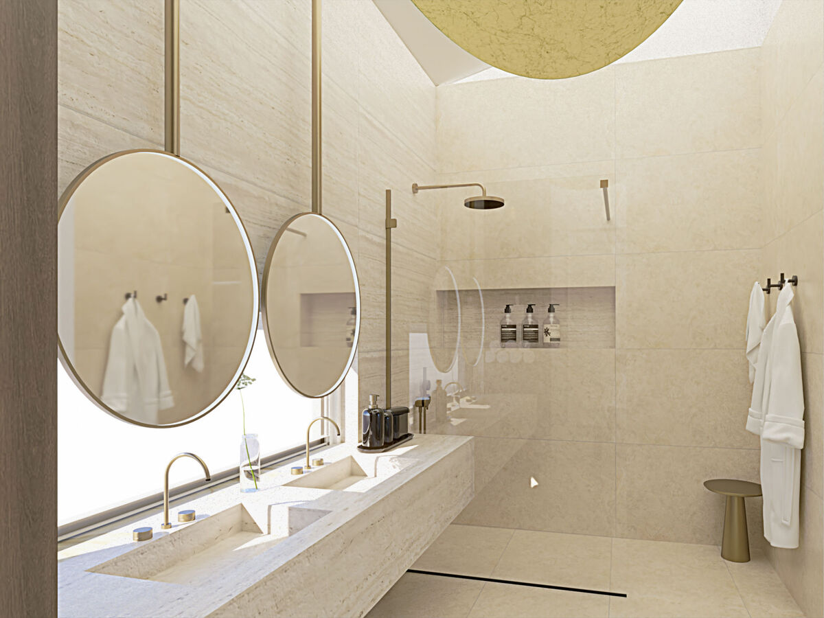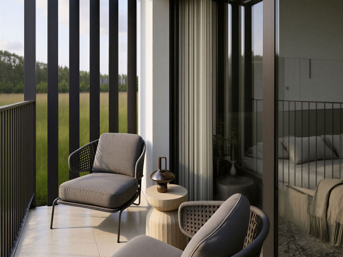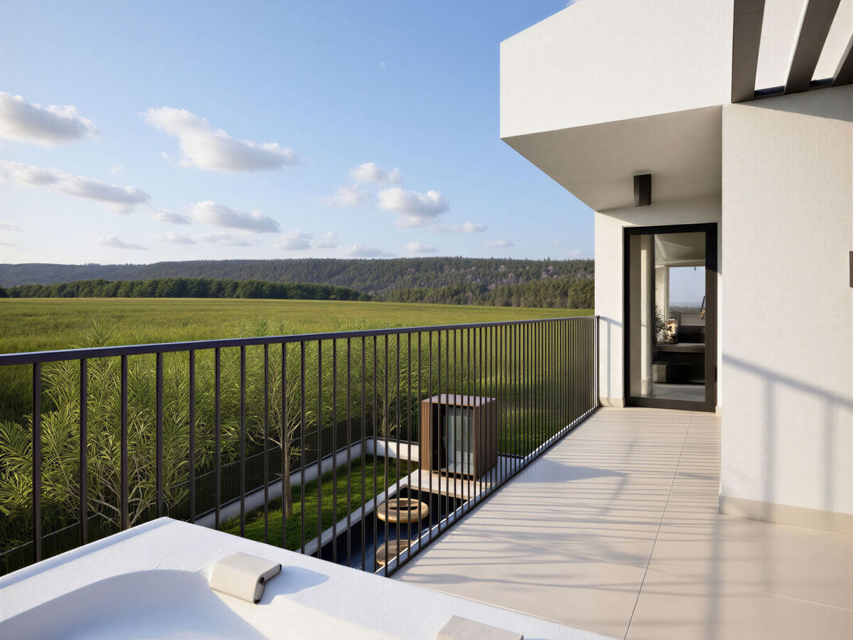 Balcon 22 m2, balcon 6 m2, terrasse 30 m2, couverte terrasse 18 m2.