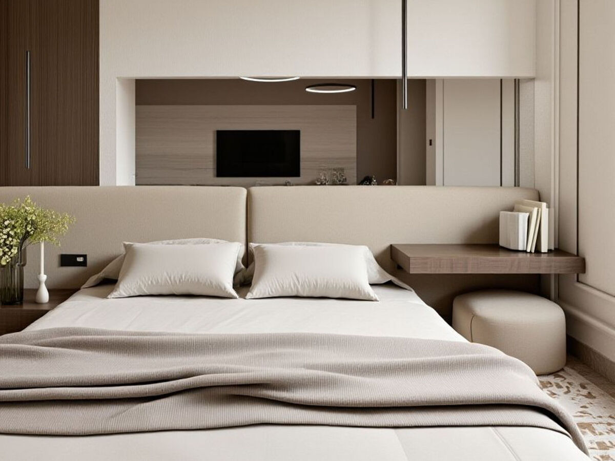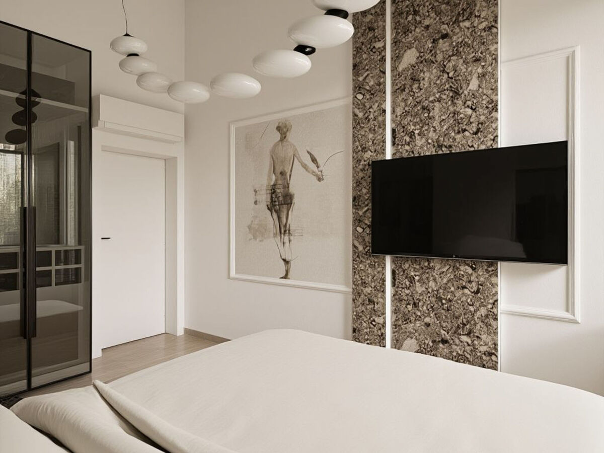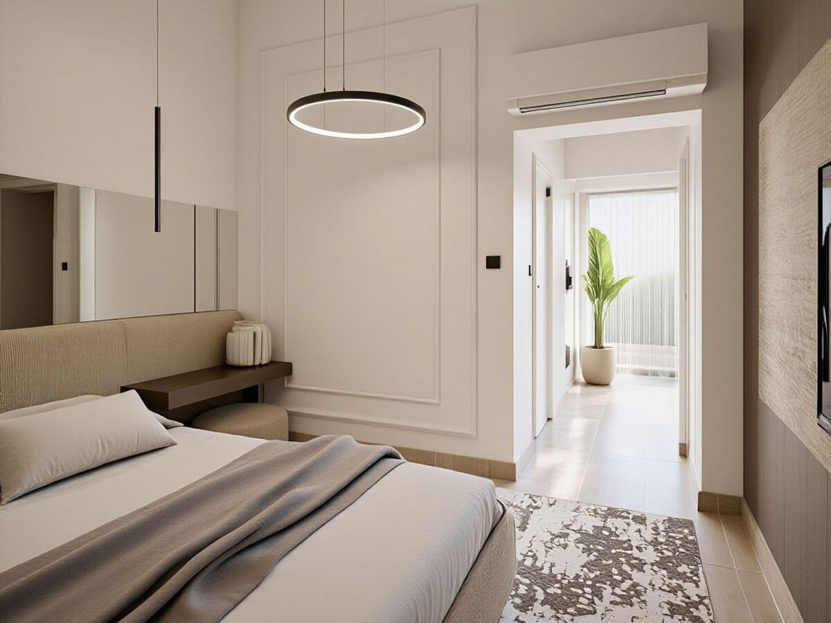 1 chambre avec 1 grand-lit (200 cm, longueur 200 cm), TV (satellite) et air-conditionné.