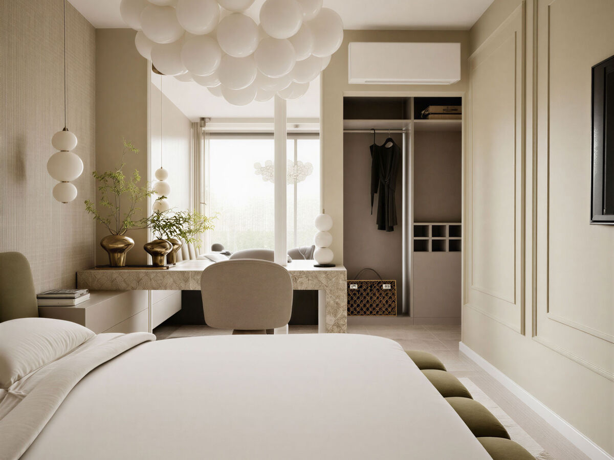 Cuisine ouverte (four, 4 plaques à induction, grille-pain, bouilloire électrique, micro-ondes, congélateur, cafetière électrique) avec air-conditionné.
