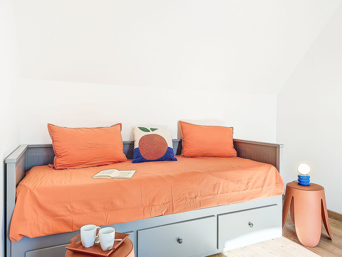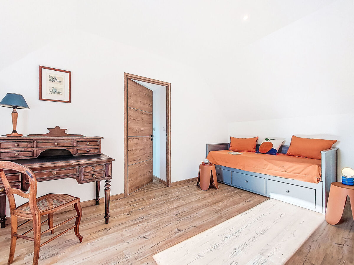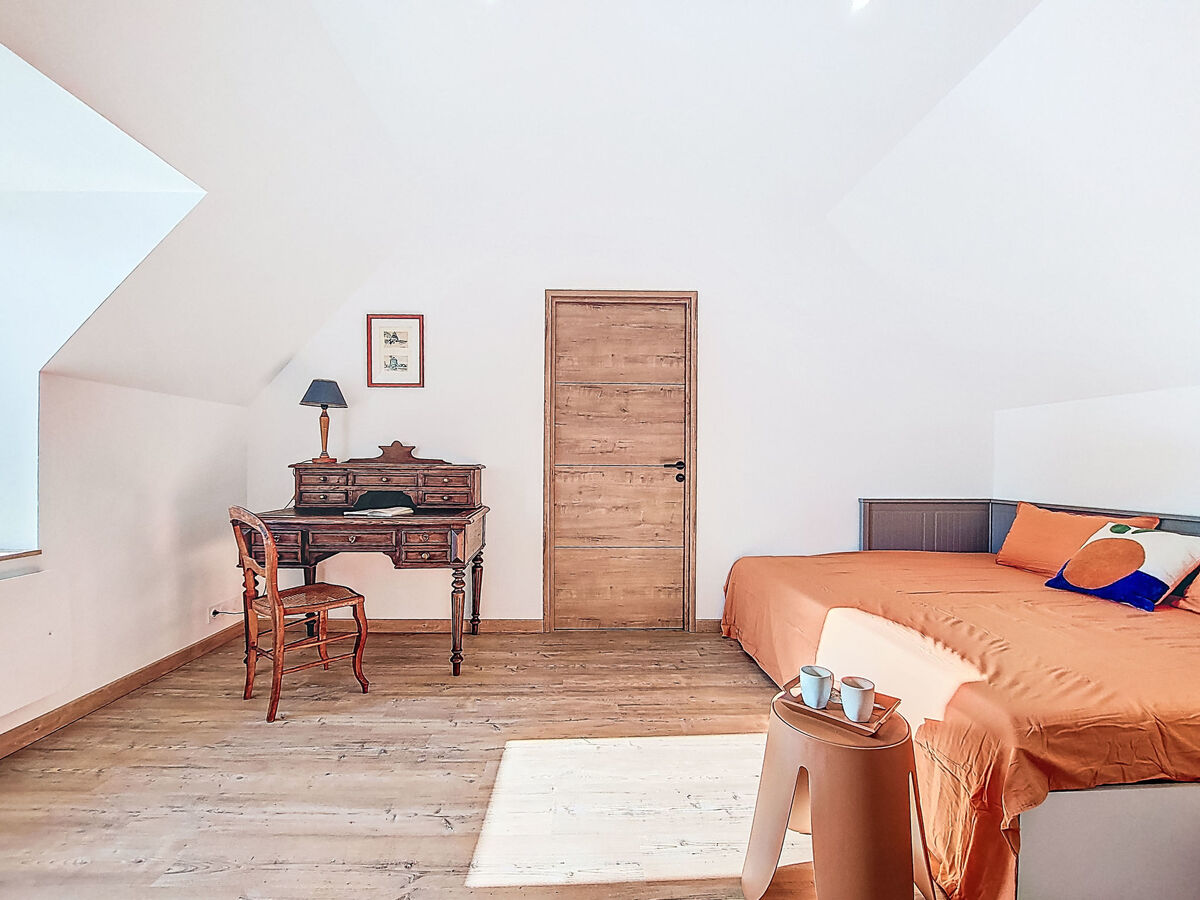 À l'étage supérieur: 2 grandes chambres, chaque chambre avec: 1 grand-lit (160 cm, longueur 200 cm).