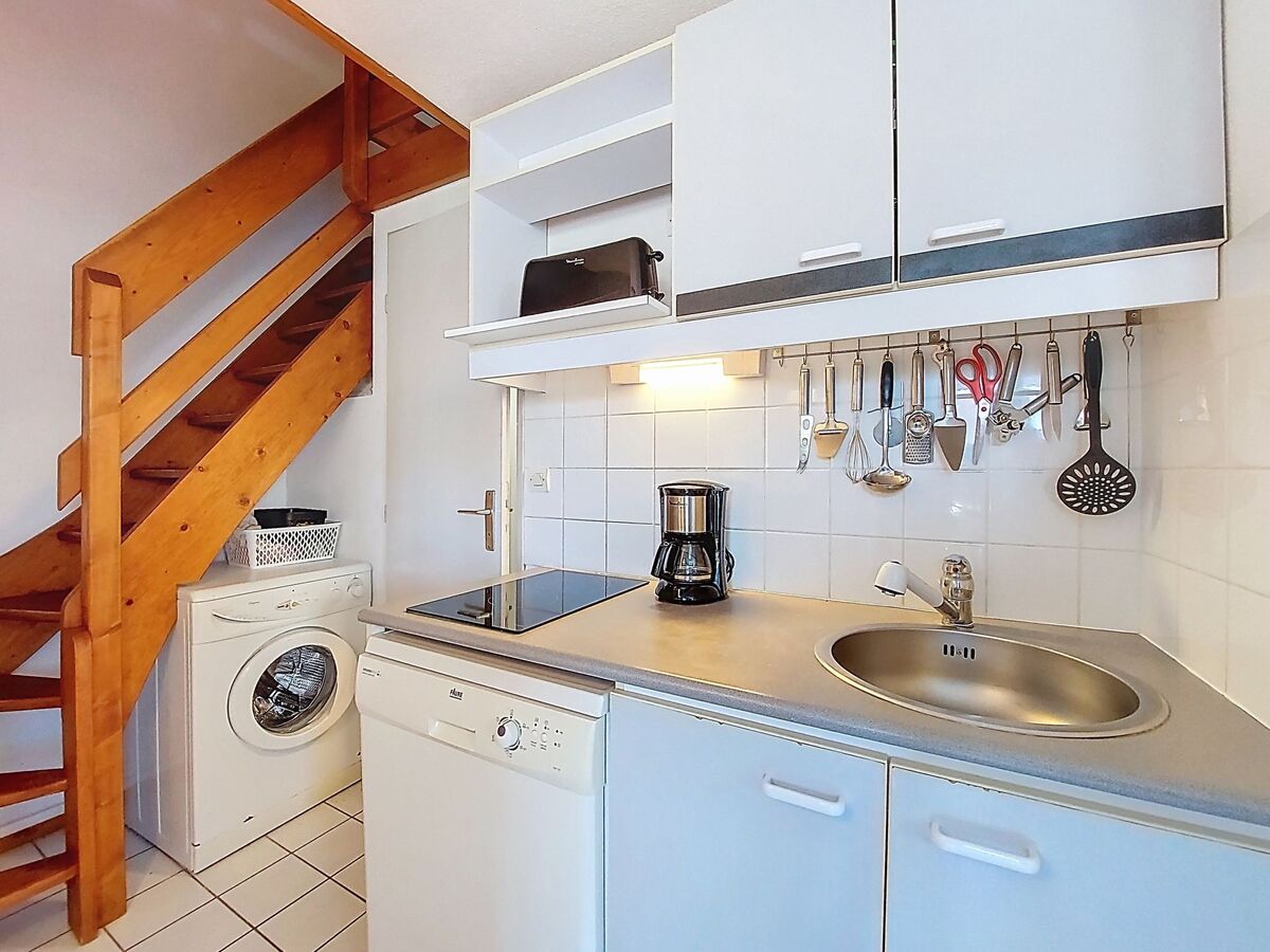 Coin cuisine (2 plaques de cuisson, lave-vaisselle, grille-pain, bouilloire électrique, congélateur, cafetière électrique, combiné micro-ondes).
