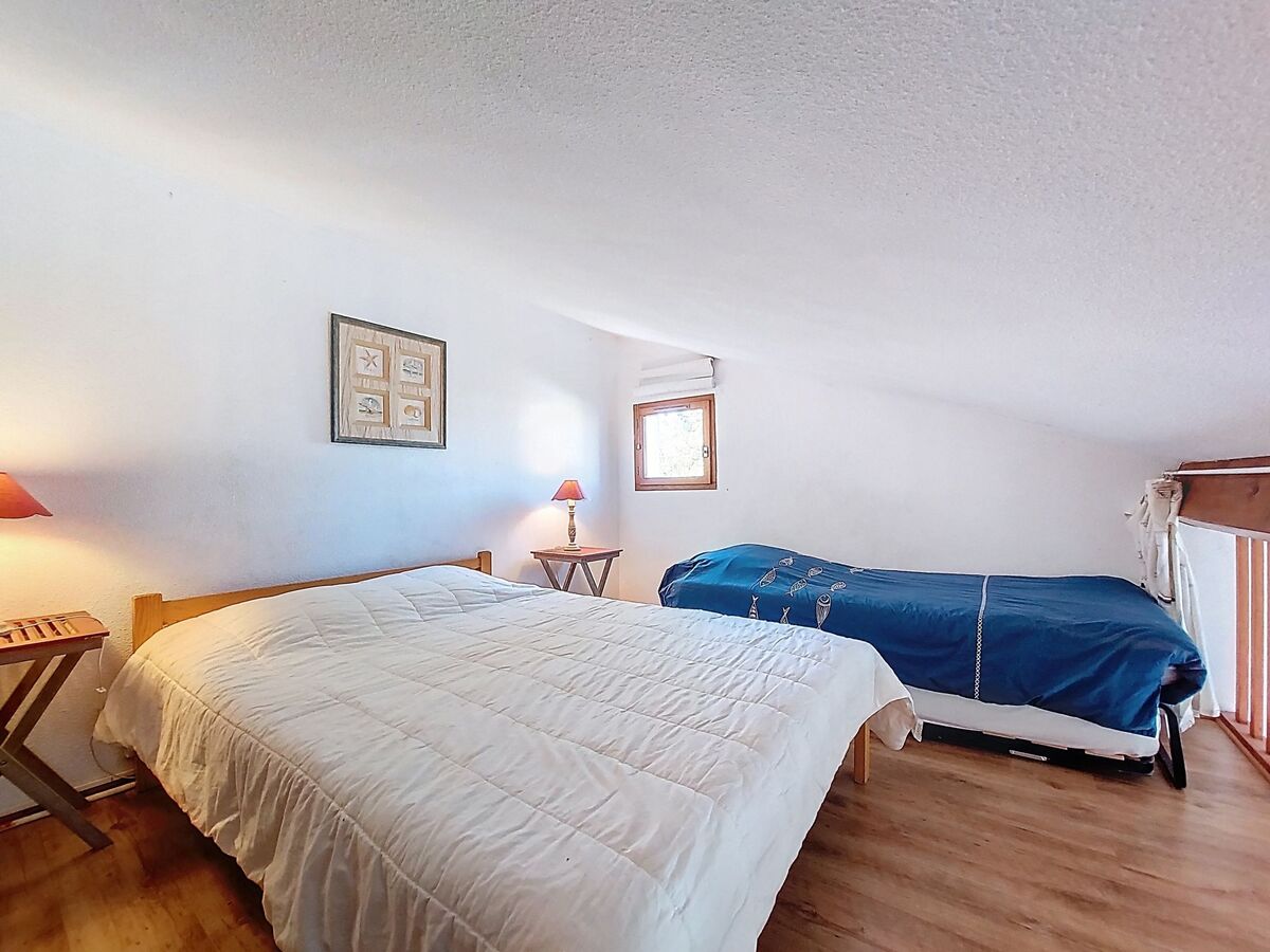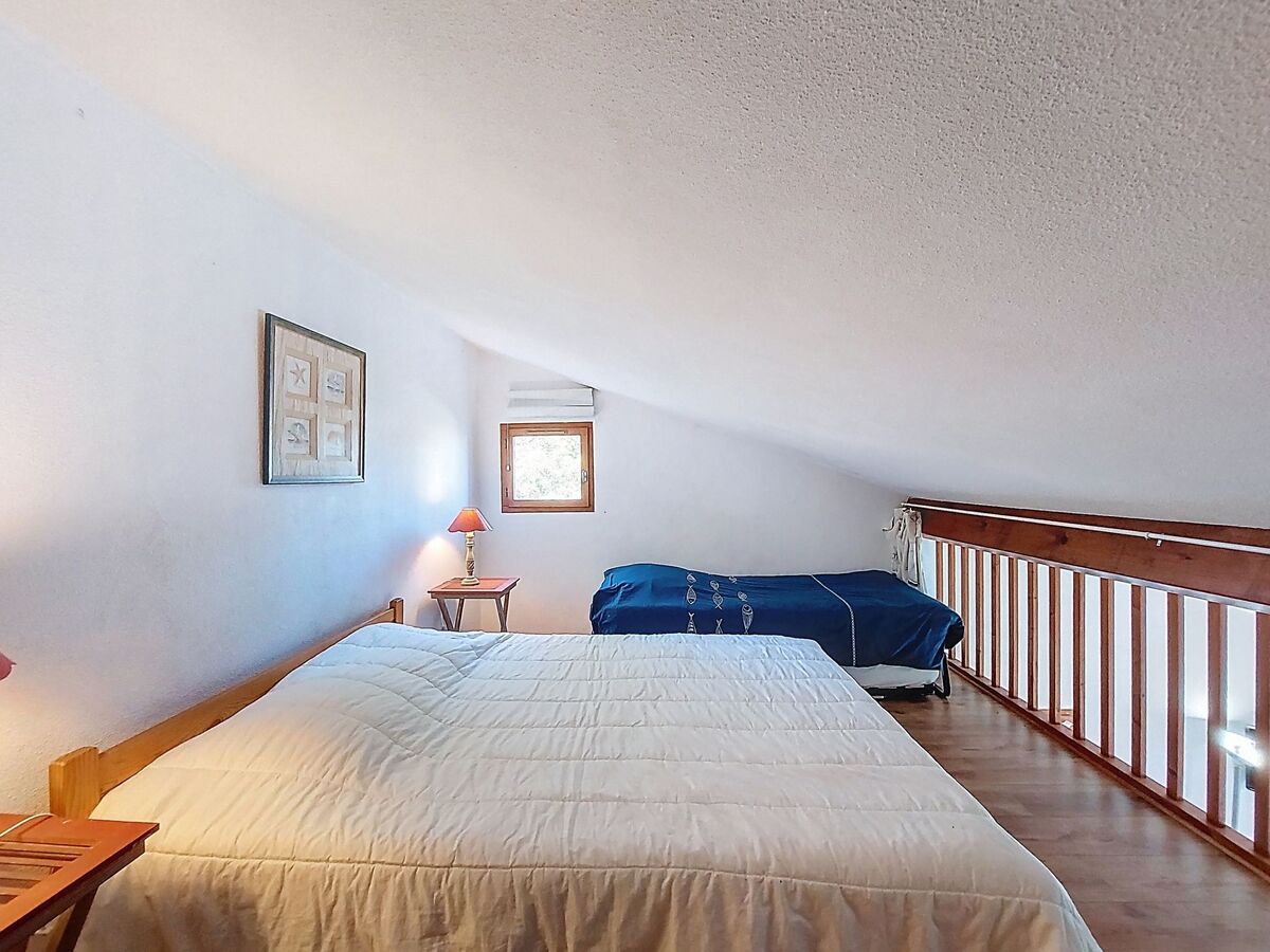 À l'étage supérieur: galerie mansardée avec 1 lit (90 cm, longueur 190 cm), 1 grand-lit (1 x 140 cm, longueur 190 cm).