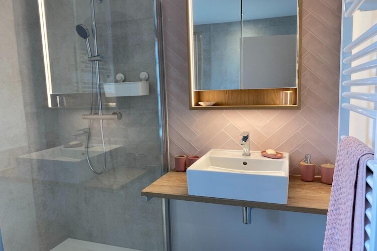 Le rez-de-chaussée s'ouvre sur un salon lumineux avec télévision, un canapé spacieux et une table à manger pour des repas conviviaux. La cuisine ouverte est entièrement équipée avec machine à café, micro-ondes, lave-vaisselle et réfrigérateur-congélateur, permettant de cuisiner et de se retrouver facilement sans perdre une miette des conversations. Une chambre double confortable, une salle de bains moderne et des toilettes séparées complètent ce niveau. À l'étage, deux autres chambres doubles offrent une intimité reposante, ainsi qu'une autre salle de bains moderne et des toilettes séparées – idéal pour les groupes recherchant confort et praticité.