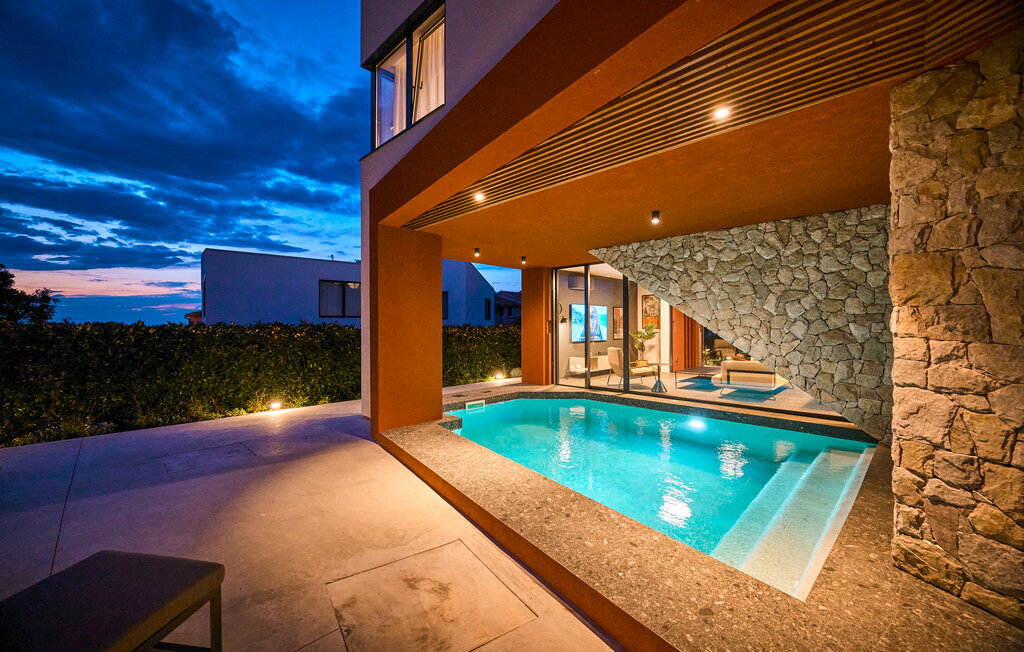 Votre magnifique piscine, illuminée le soir, vous offre à toute heure de la journée un rafraîchissement bienvenu lors des chaudes journées d'été. Faites le plein d'énergie sur les confortables chaises longues, dégustez un verre de vin dans l'accueillant salon extérieur et allumez le barbecue au coucher du soleil.