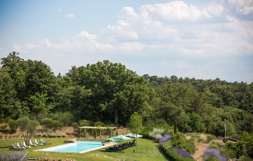 Servez votre petit déjeuner à l'extérieur, où vous pourrez vous imprégner de l'atmosphère paisible entourée d'une nature magnifique. Promenez-vous jusqu'à la grande piscine commune et offrez-vous des siestes reposantes sur les chaises longues. Utilisez le barbecue commun et discutez autour d'un verre de vin dans les nuits toscanes.