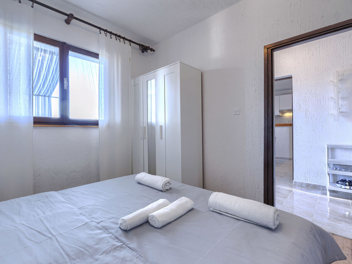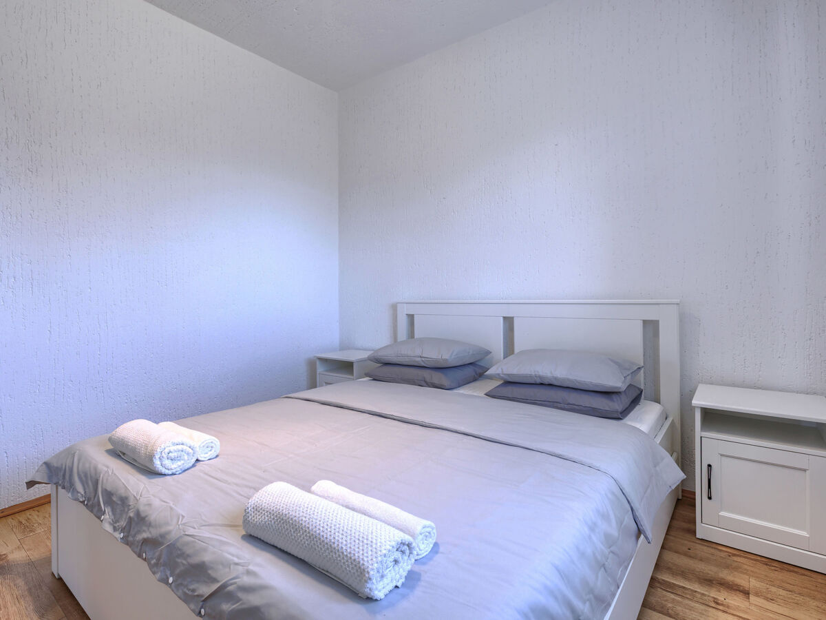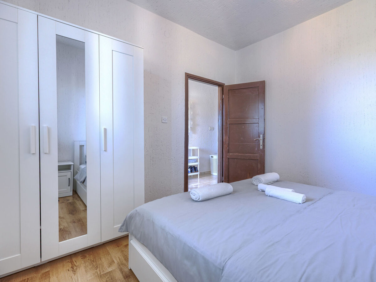 1 chambre avec 1 grand-lit (160 cm, longueur 200 cm).