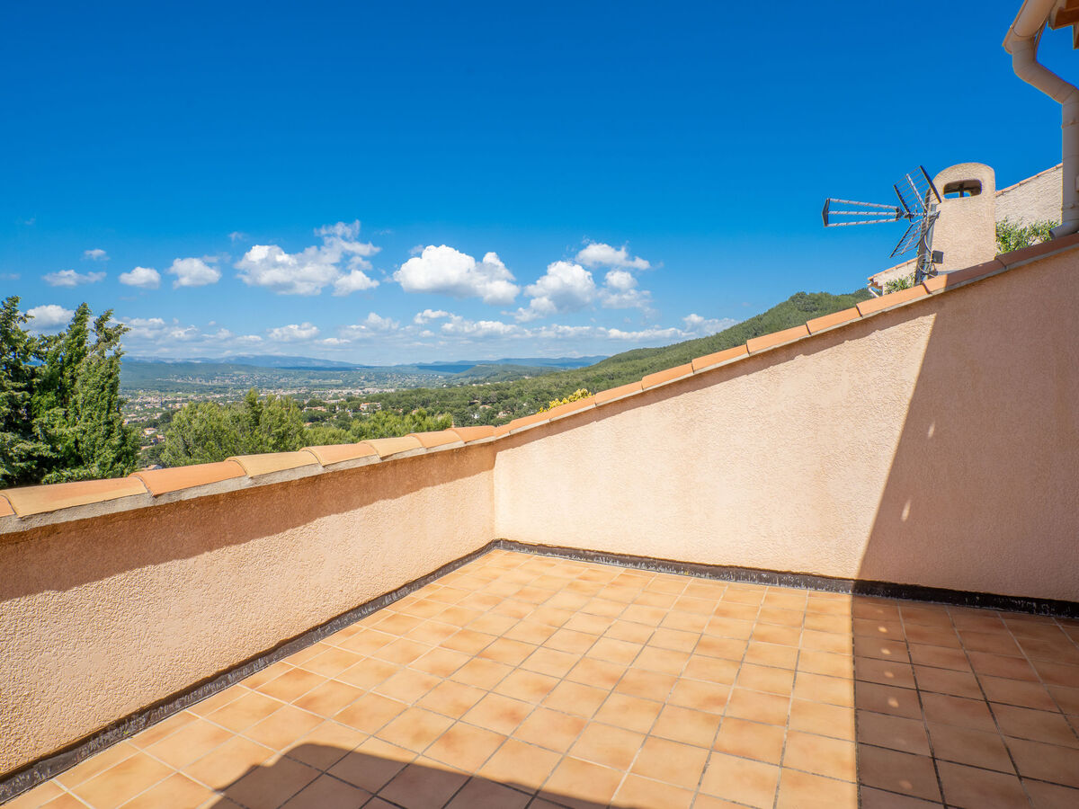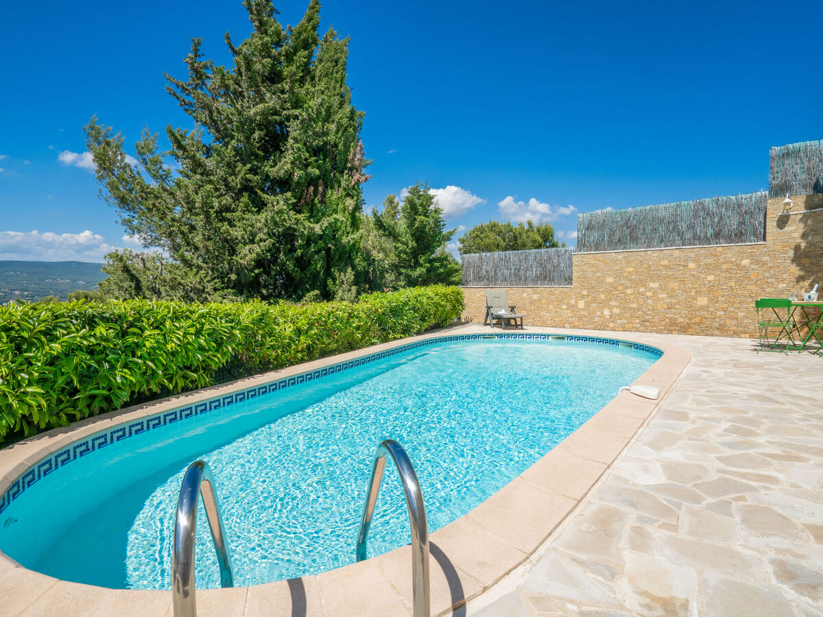 Côté cour, le terrain de 517 m2 et la piscine de 8 x4 4 m avec alarme de sécurité sont destinés à l’usage privé. Pour accéder à la maison, les hôtes traverseront un escalier de 30 marches.