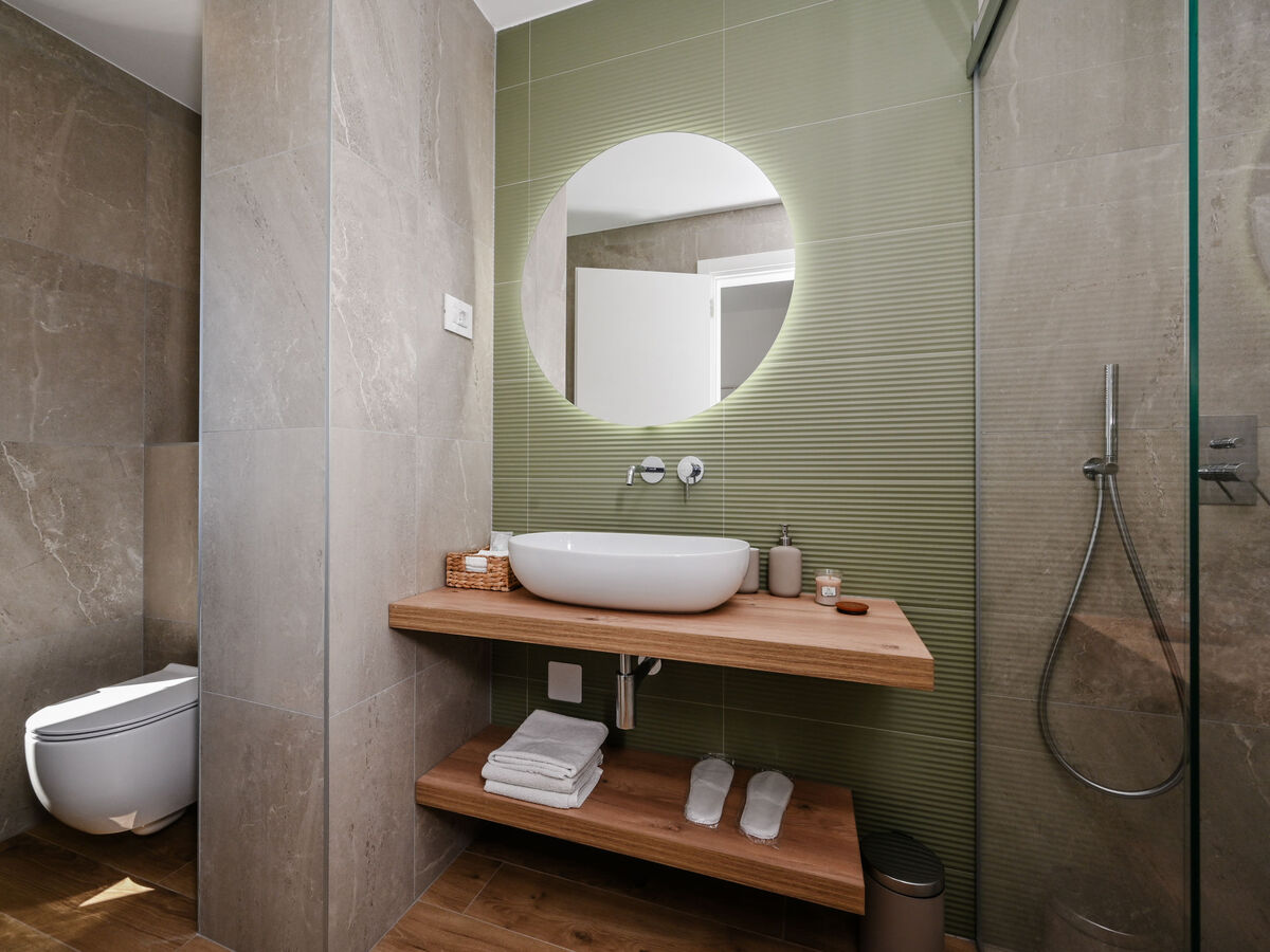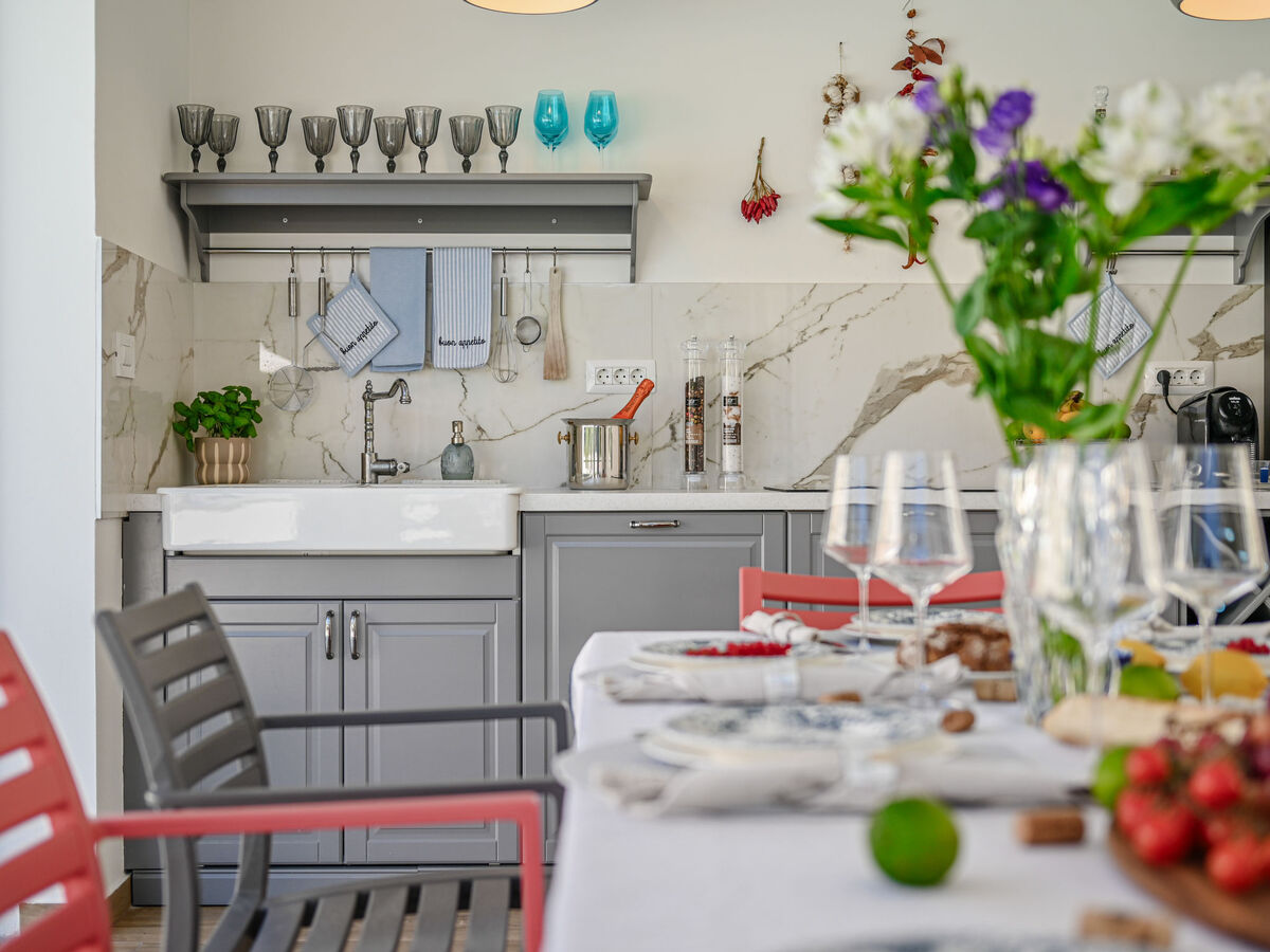Dans le hameau de Kras, à 3.5 km du centre de Dobrinj, à 7 km du centre de Malinska, à 8 km du centre de Krk, à 6 km de la mer, à 6 km de la plage, dans la verdure.