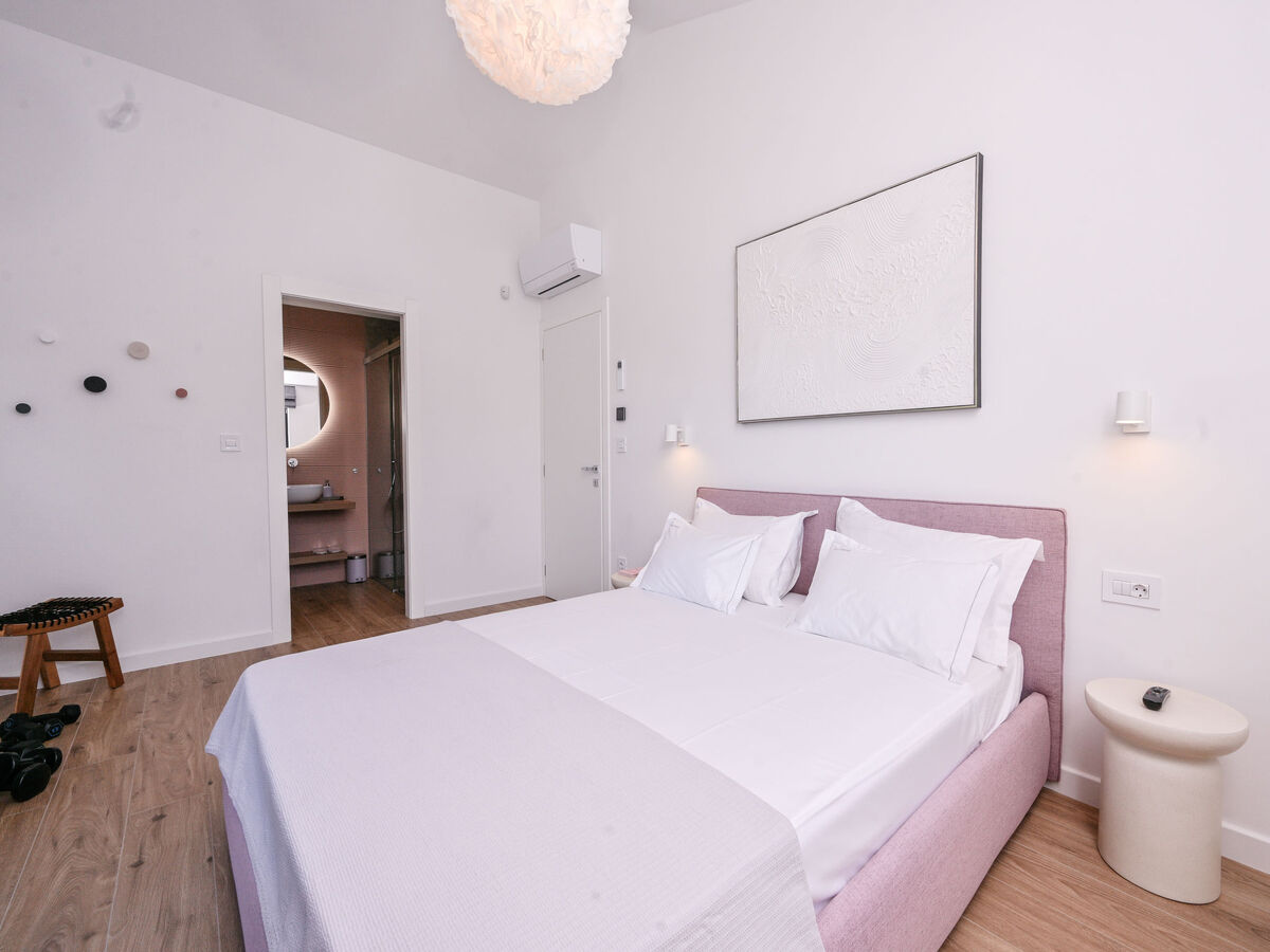 1 chambre avec 1 grand-lit (180 cm, longueur 200 cm), douche/WC et TV (satellite).