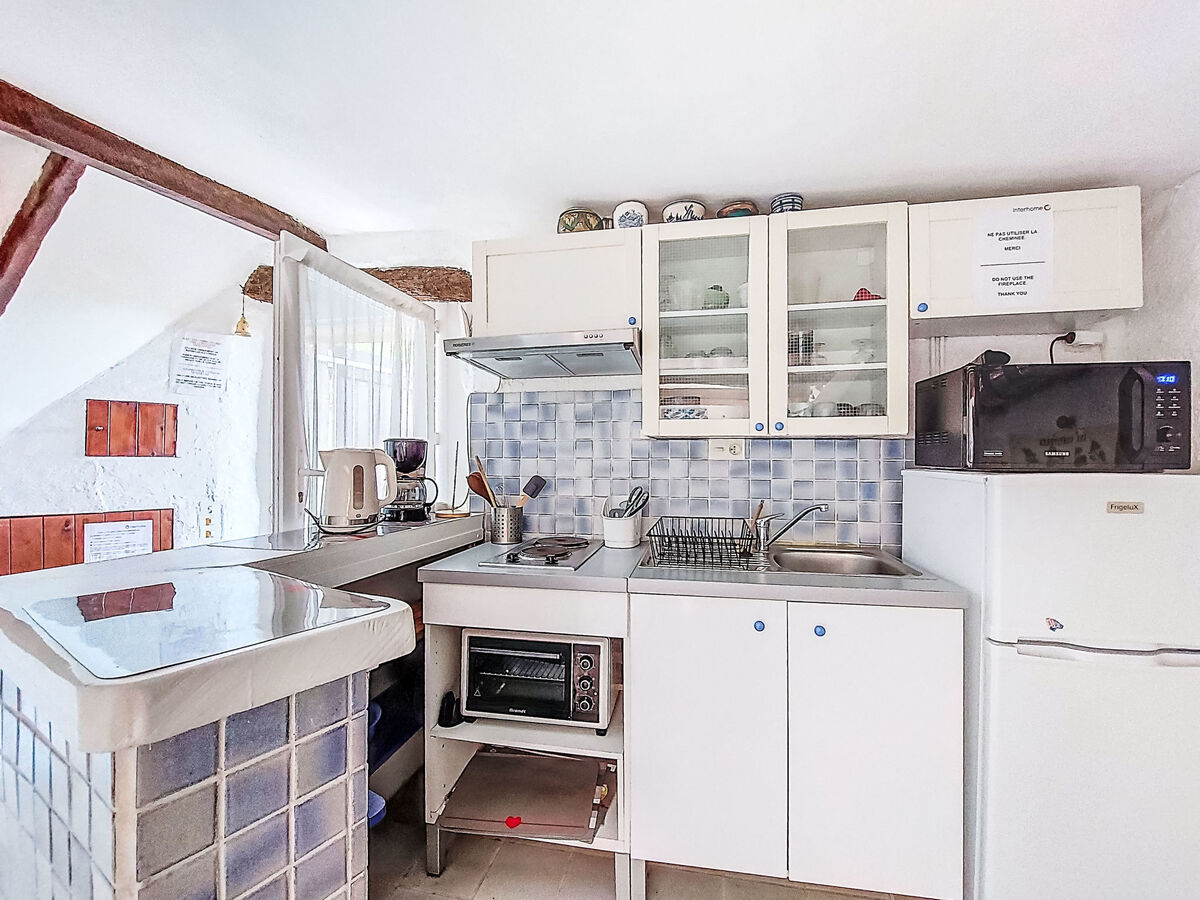 Aménagée sur 2 niveaux, elle est composée de 3 pièces, dont 2 chambres et 1 salle de bains. Côté aménagement intérieur, c’est le style ancien qui est privilégié au niveau du séjour/ qui comprend une table de repas, une télévision, une radio, un lecteur CD/DVD. La petite cuisine équipée s'ouvre aussi sur le séjour.