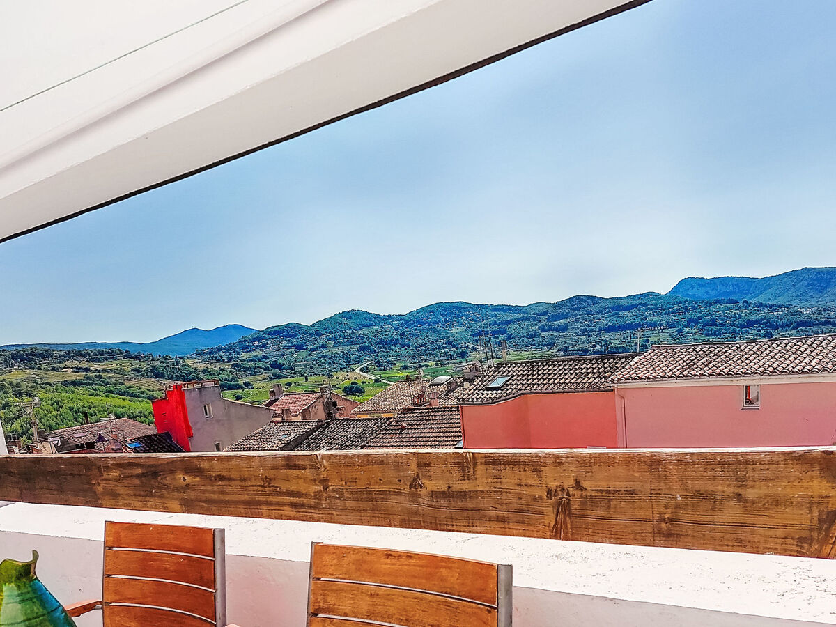 L’extérieur de la maison s’ouvre sur une terrasse meublée de 13 m² orientée vers le sud pour profiter de la belle vue sur la vallée et la localité.