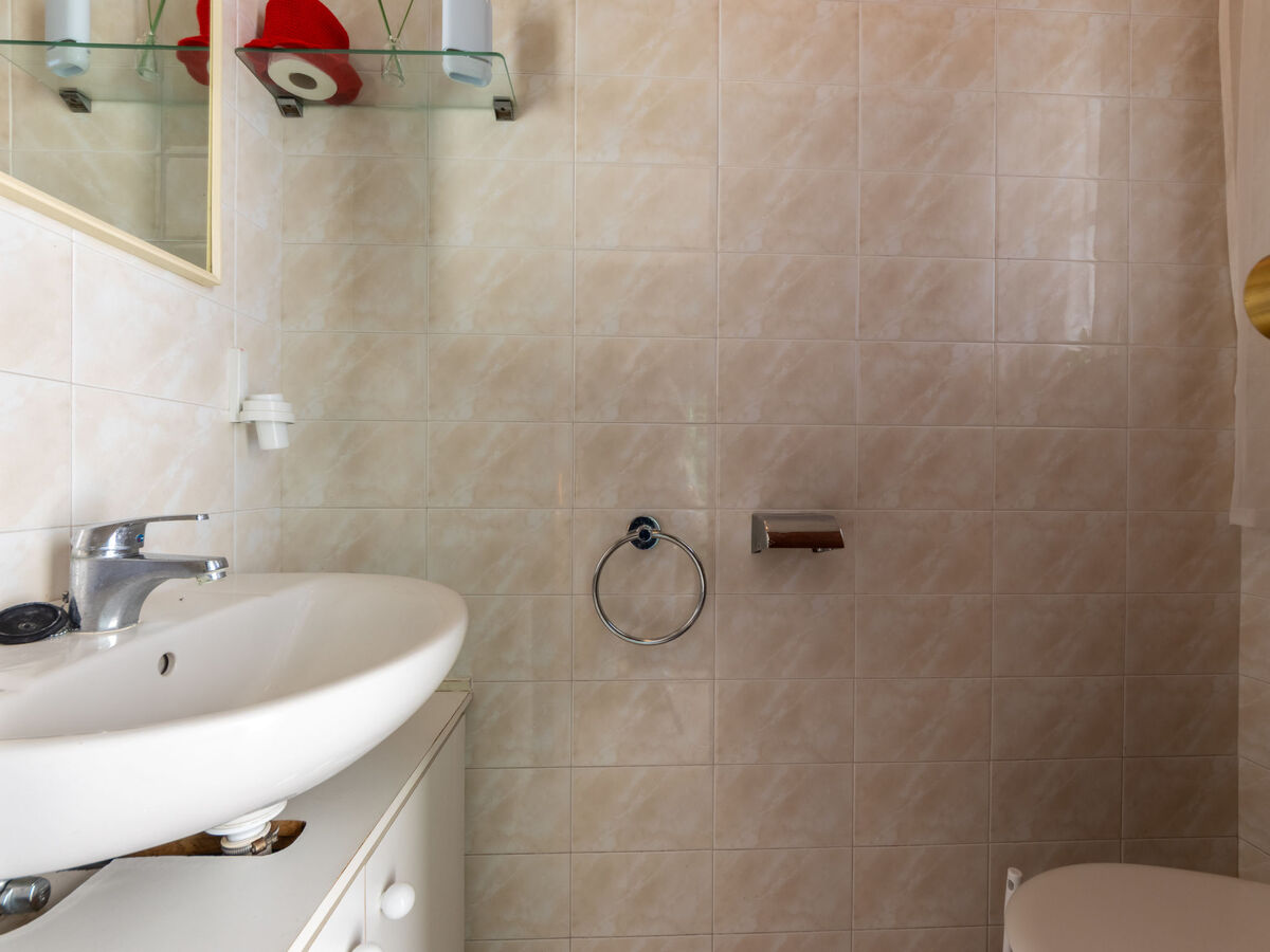 À l'étage supérieur: 1 chambre avec 1 grand-lit (150 cm, longueur 190 cm).