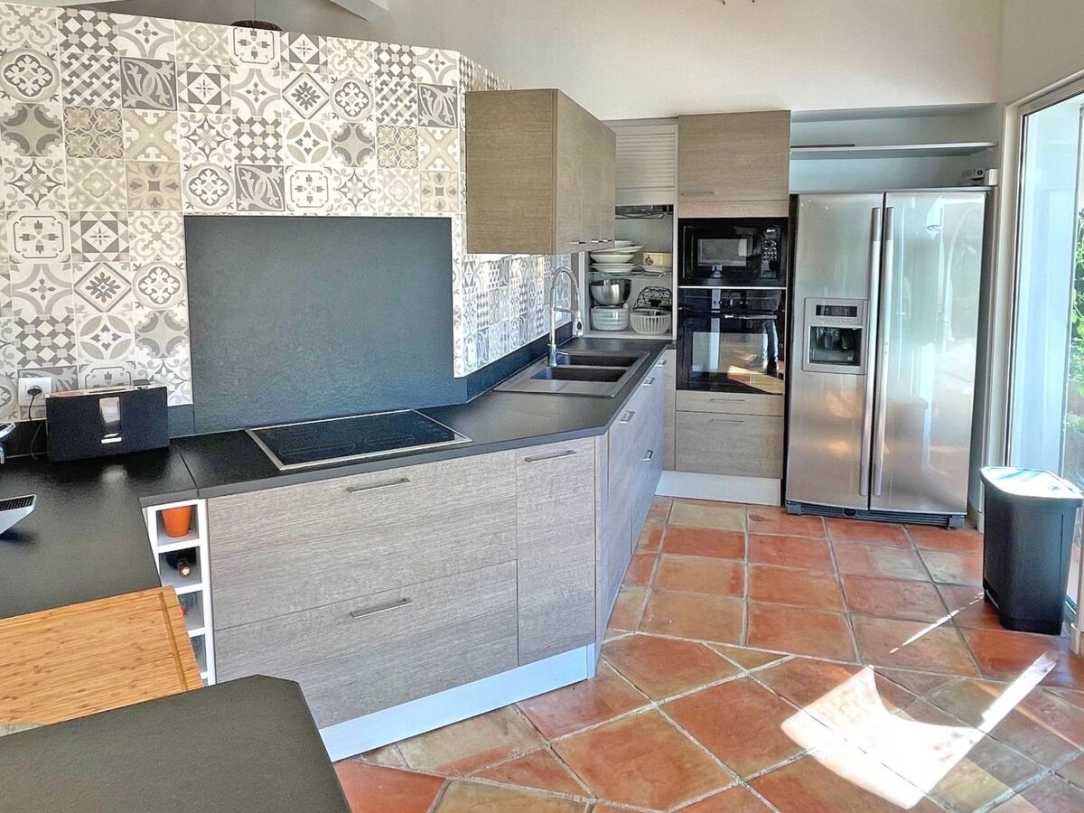 - Cuisine équipée ouverte : plaques de cuisson, four et micro-ondes, lave-vaisselle, réfrigérateur américain, machine à café Nespresso, etc...