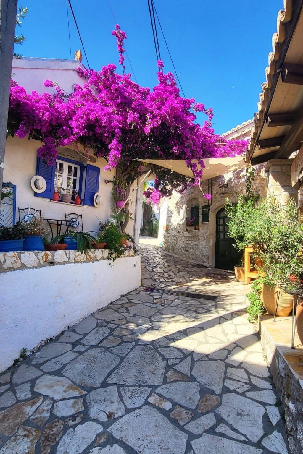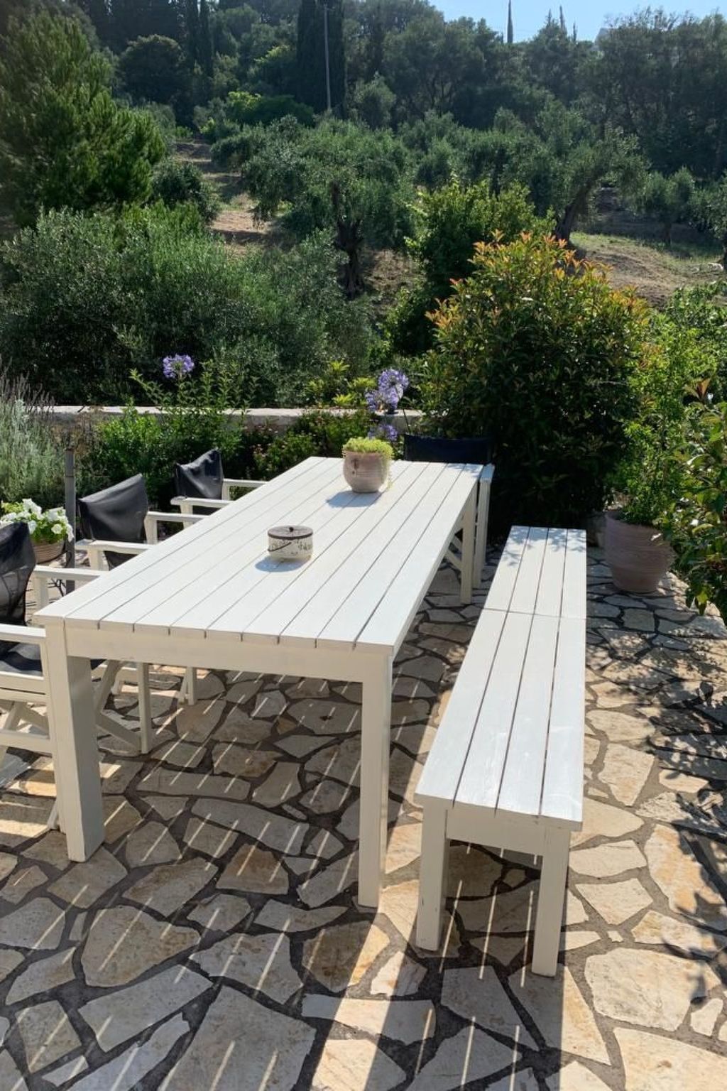 Can you see yourself sitting with your friends or family at the large picnic table on the terrace? Glass in hand, while the smell of tender chicken legs on the barbeque caresses your nostrils, you discuss what a wonderful day at the beach you had, or that stunning walk through north-western Corfu you have planned for the next day.