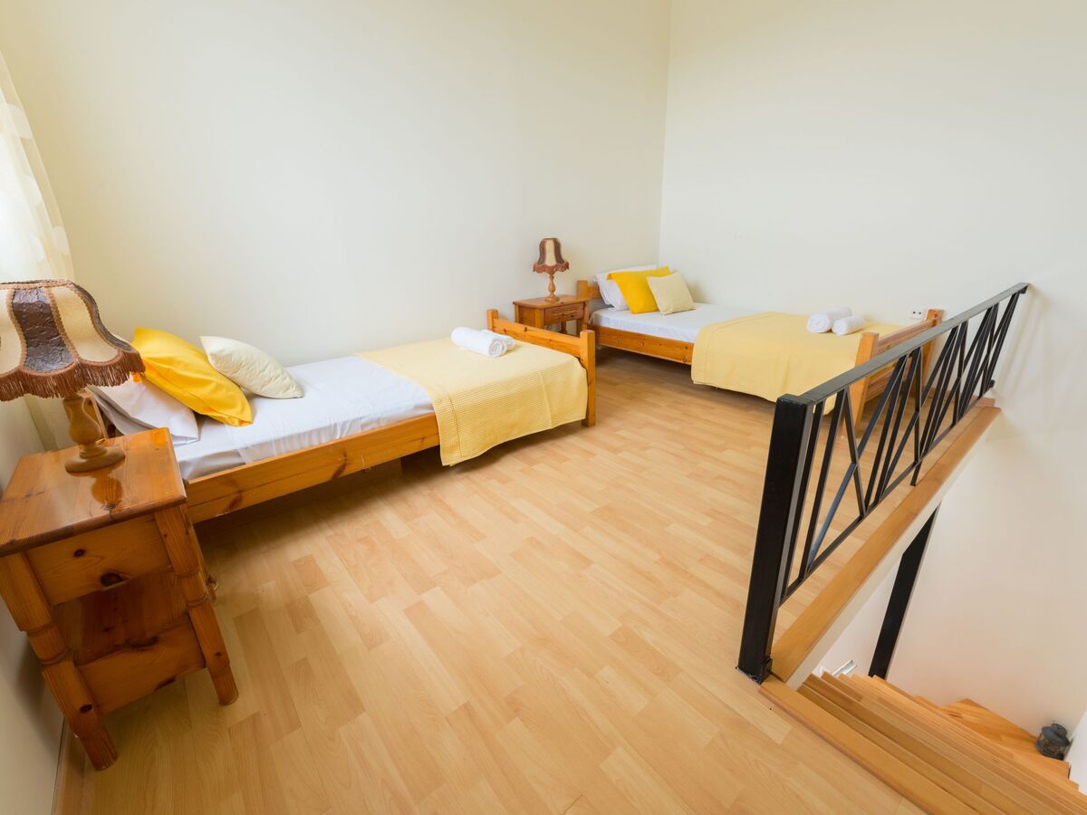 There are four bedrooms, a living room with fully equipped kitchen and two bathrooms.