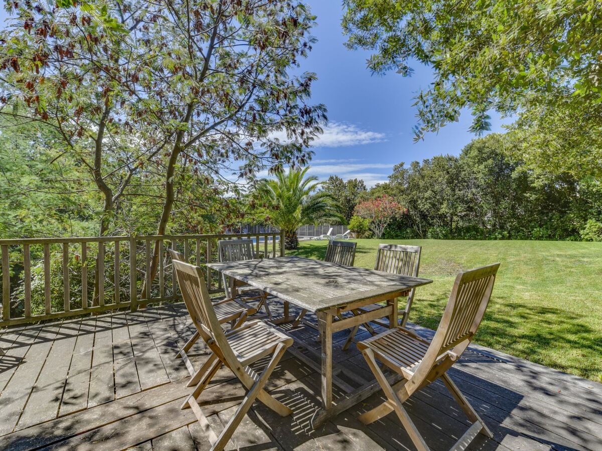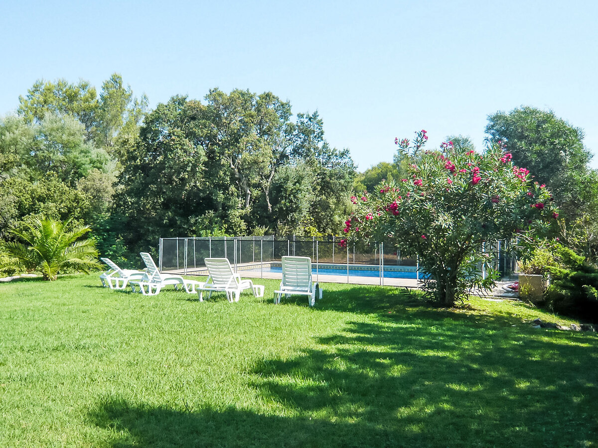 À l’extérieur, un terrain de 2800 m², une piscine clôturée et un espace barbecue sont accessibles. Des chaises longues et des meubles de jardin sont aussi disponibles.