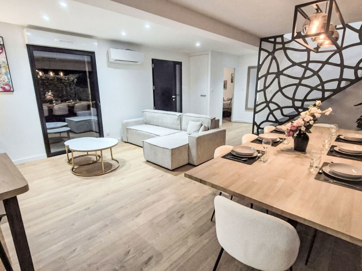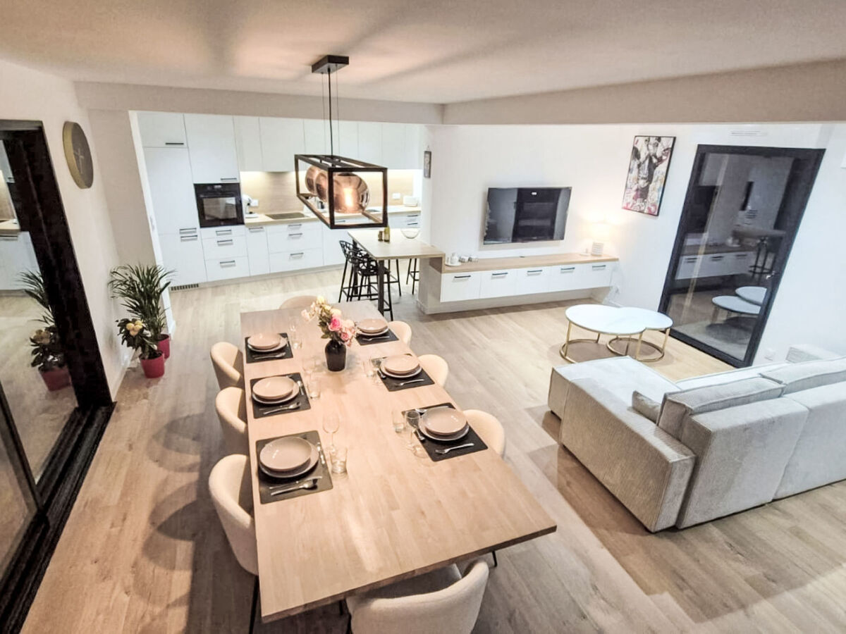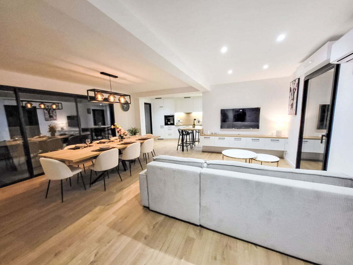 Spacieux et clair, aménagement confortable et de bon goût: grand séjour/salle à manger 40 m2, ouvert avec Télévision numérique et écran plat.