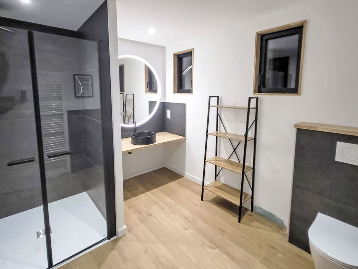 Douche, WC séparé.