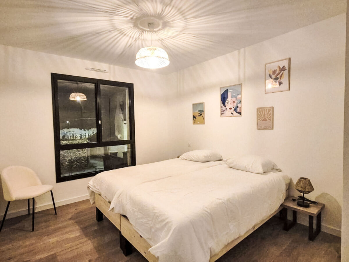 1 chambre 12 m2 avec 1 grand-lit (160 cm, longueur 200 cm).