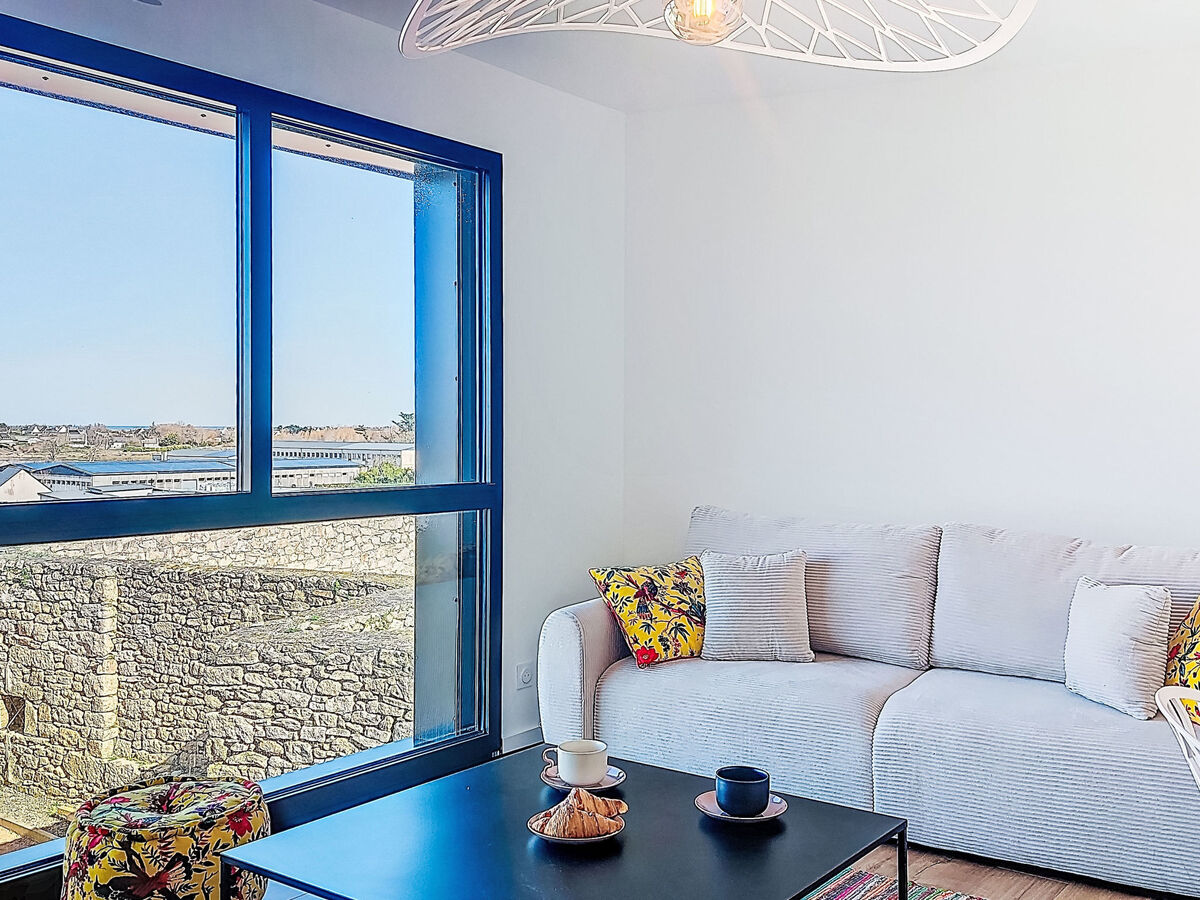 Au centre de Guisseny, excellente situation: centrale mais tranquille, à 400 m de la mer, à 400 m de la plage.