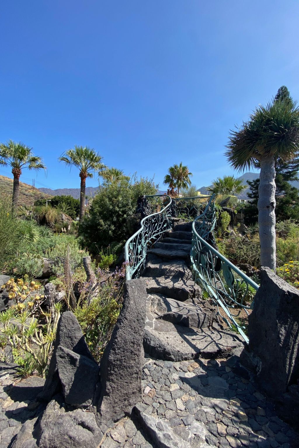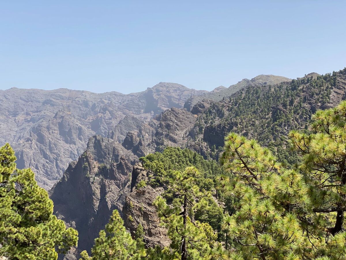 To the east and south, you can look over the Hausbaranco to the opposite part of Puntagorda, above which is the Montana Las Tricias and a little higher still is the Roque Muchachos, the highest mountain on the island.