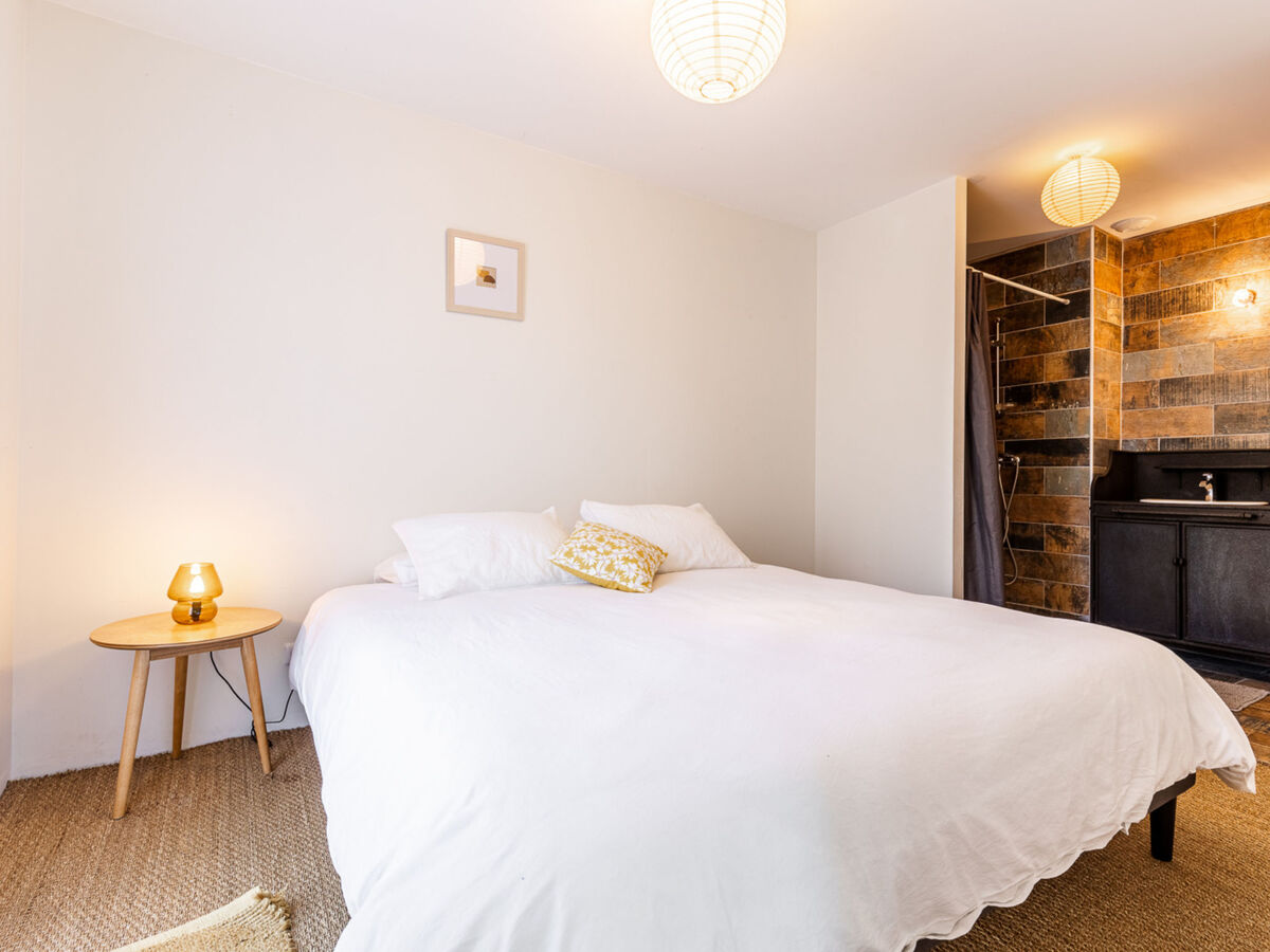 1 chambre avec 1 grand-lit (1 x 160 cm, longueur 200 cm), lavabo et douche.