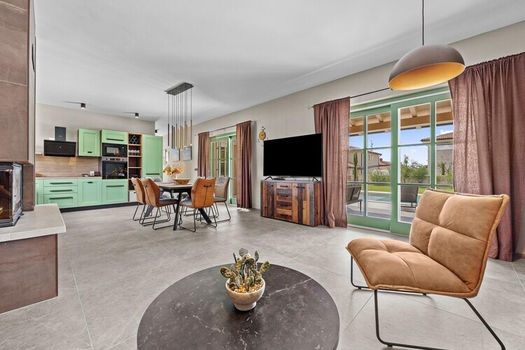 Nichée dans le cadre paisible de Žminj, cette villa contemporaine offre une escapade istrienne sereine où se conjuguent douceur de vivre et confort moderne. Lumineuse et accueillante, elle propose des espaces de vie ouverts qui se prolongent harmonieusement vers une terrasse-jardin et une piscine privée, idéales pour des matins paisibles, des baignades rafraîchissantes en milieu de journée ou des soirées sous les étoiles. Conçue pour les familles ou les groupes d'amis, son agencement s'adapte facilement aux moments de convivialité comme aux instants de calme.