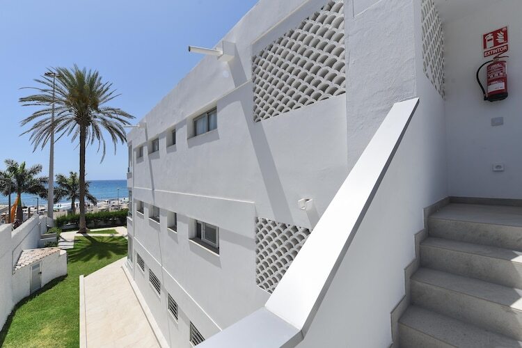 Le charme de ce séjour se révèle pleinement dans ses espaces extérieurs. Votre terrasse privée vous offre un havre de paix où vous pourrez vous prélasser au soleil des Canaries sur de confortables transats ou savourer un petit-déjeuner en plein air avec vue sur la végétation luxuriante. Lorsque la chaleur de midi se fait sentir, quelques pas vous mènent à la piscine extérieure commune, une oasis étincelante parfaite pour une baignade rafraîchissante. Grâce à son agencement de plain-pied, passer de votre café matinal sur la terrasse à une baignade dans la piscine se fait naturellement et en toute convivialité.