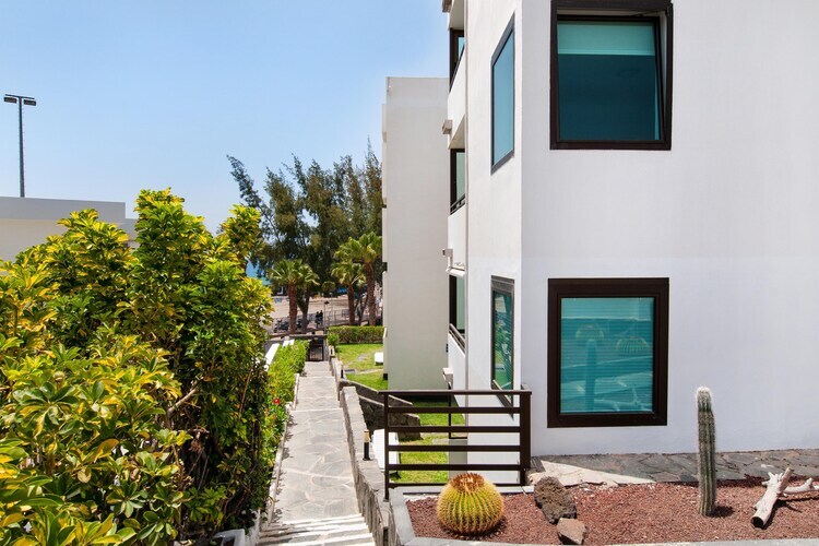 Le charme de ce séjour se révèle pleinement dans ses espaces extérieurs. Votre terrasse privée vous offre un havre de paix où vous pourrez vous prélasser au soleil des Canaries sur de confortables transats ou savourer un petit-déjeuner en plein air avec vue sur la végétation luxuriante. Lorsque la chaleur de midi se fait sentir, quelques pas vous mènent à la piscine extérieure commune, une oasis étincelante parfaite pour une baignade rafraîchissante. Grâce à son agencement de plain-pied, passer de votre café matinal sur la terrasse à une baignade dans la piscine se fait naturellement et en toute convivialité.