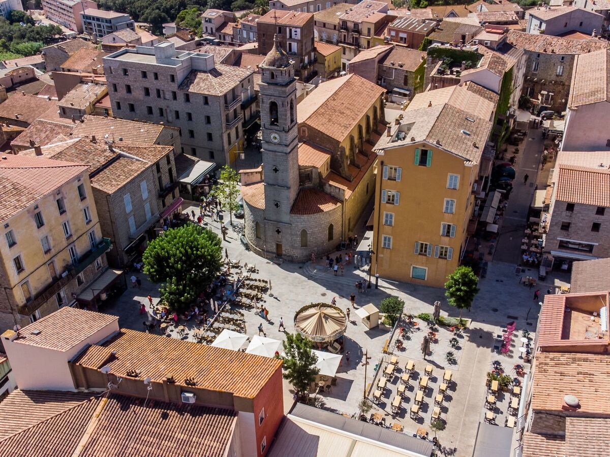 Dans le quartier de Pavellone, en bordure de la localité, à 10 km du centre de Porto-Vecchio, situation tranquille, surélevée, à 700 m de la mer, à 700 m de la plage, route à traverser.
