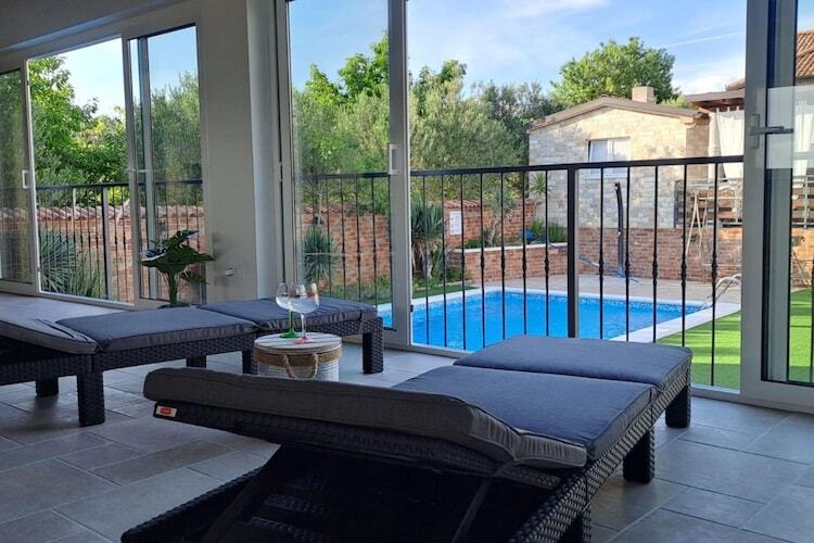 Salle de séjour(canapé-lit double, TV(satellite), table, coin salon), cuisine ouverte(foyer(électrique), cafetière/percolateur, four, micro ondes, lave-vaisselle , combinaison réfrigérateur/congélateur, , ), chambre avec salle de bains(lit double, douche, lavabo, WC), chambre avec salle de bains(lit double, douche, lavabo, WC), chambre avec salle de bains(lit double, douche, lavabo, WC), salle de bains(lavabo, WC), salle de fitness(appareils de fitness), Accès Internet, Meubles de jardin, sèche-linge, spa nordique, lave-linge , chauffage(électrique), climatisation, terrasse, jardin(clôturé), barbecue, parking, piscine(privé, extérieur), fer à repasser, sèche-cheveux