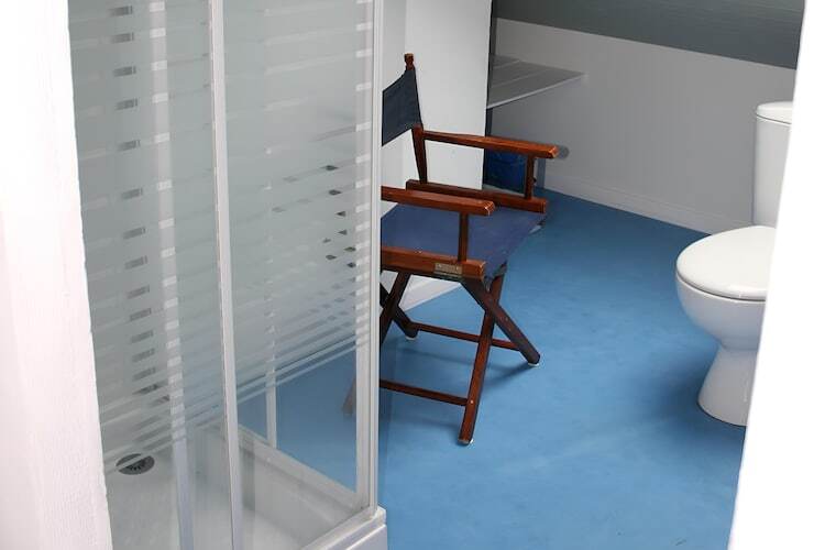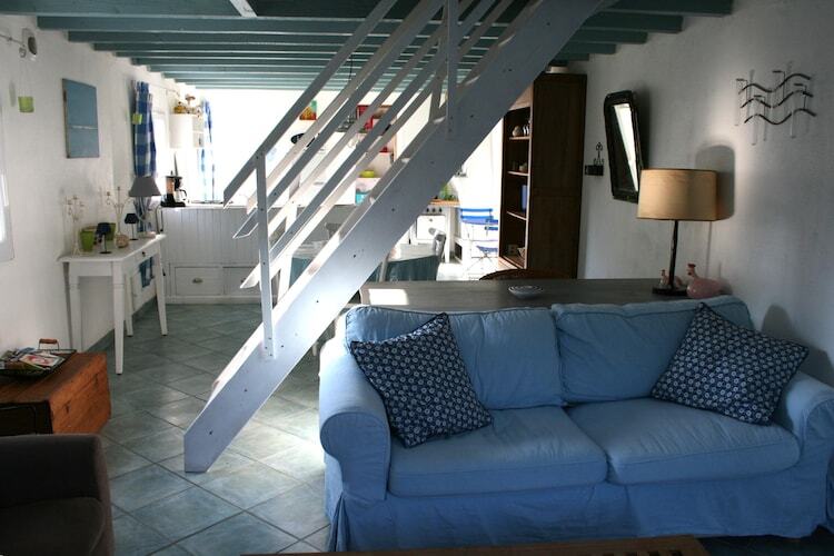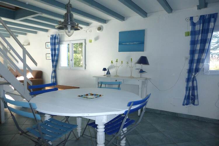 L’intérieur lumineux, décoré dans des tons marins blancs et bleus, crée une atmosphère chaleureuse et conviviale, propice à la détente après une journée de balades ou de baignades.