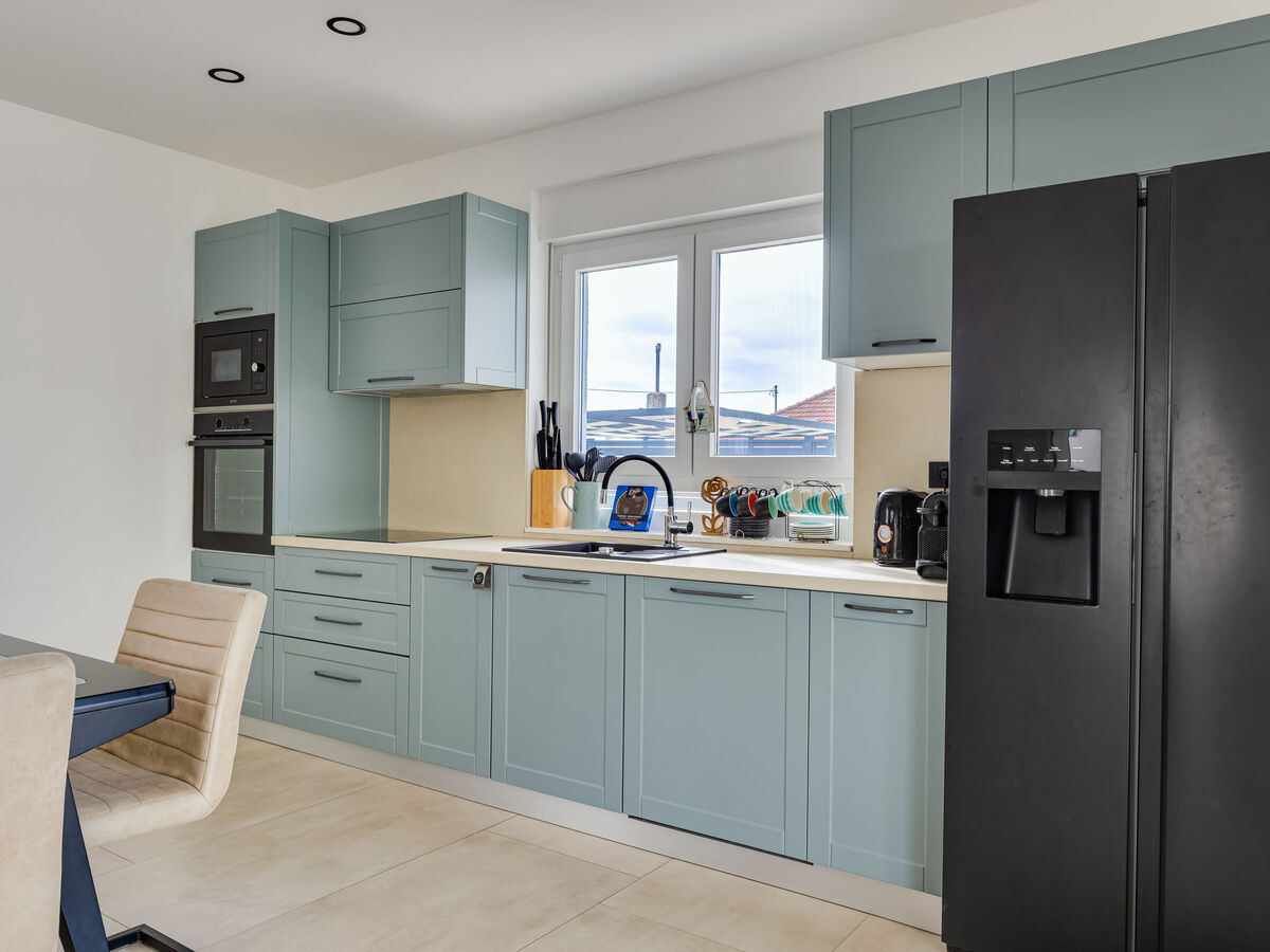 Cuisine ouverte (four, lave-vaisselle, 4 plaques à induction, grille-pain, bouilloire électrique, micro-ondes, congélateur, cafetière électrique, Capsules pour machine à café (Nespresso) (NON INCLUSES)).