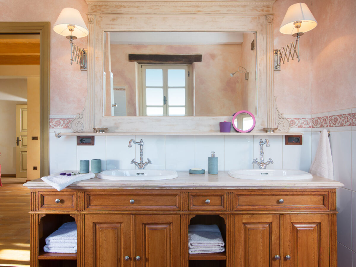 2 chambres, chaque chambre avec: 1 grand-lit (180 cm, longueur 200 cm), bain/WC, avec baignoire d'angle, TV (satellite) et air-conditionné.