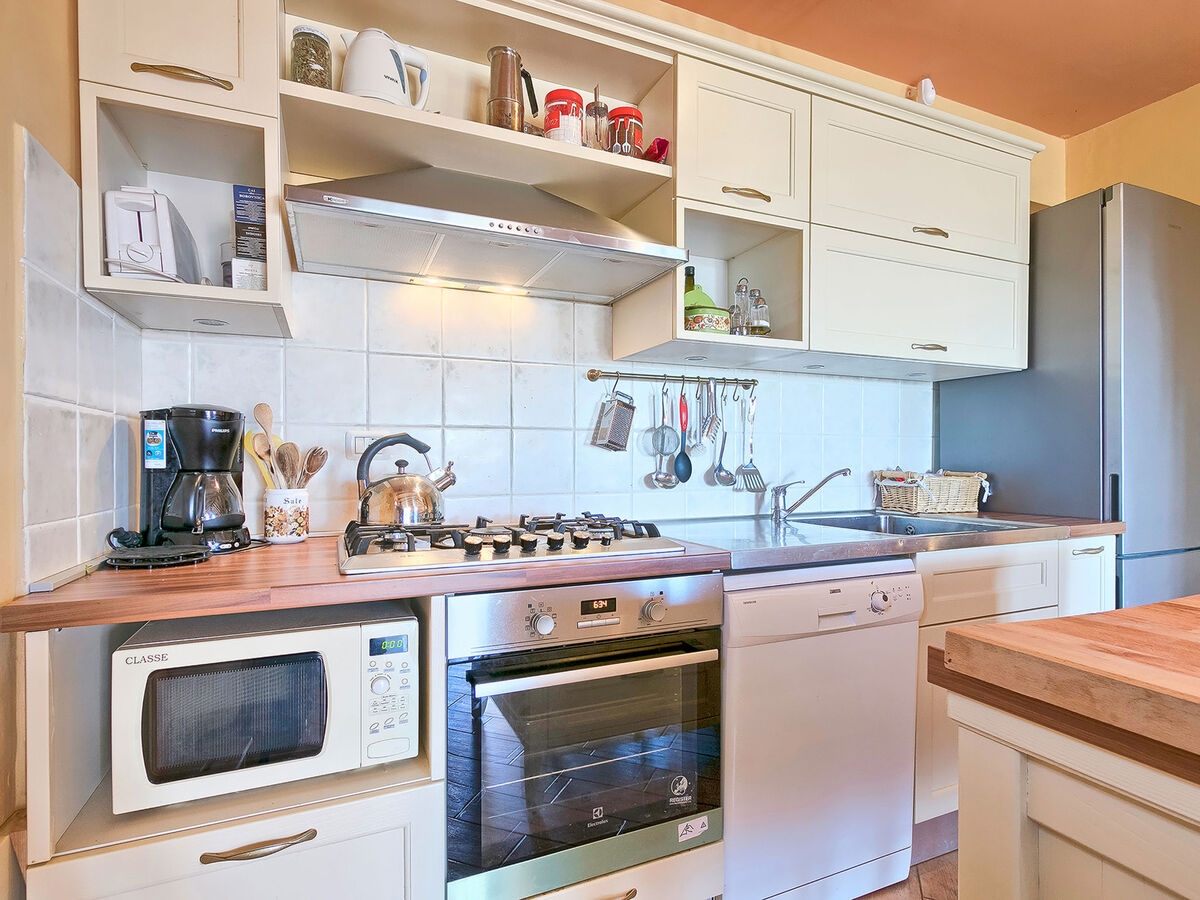 Cuisine ouverte (four, lave-vaisselle, 4 feux, bouilloire électrique, micro-ondes, congélateur, cafetière électrique).