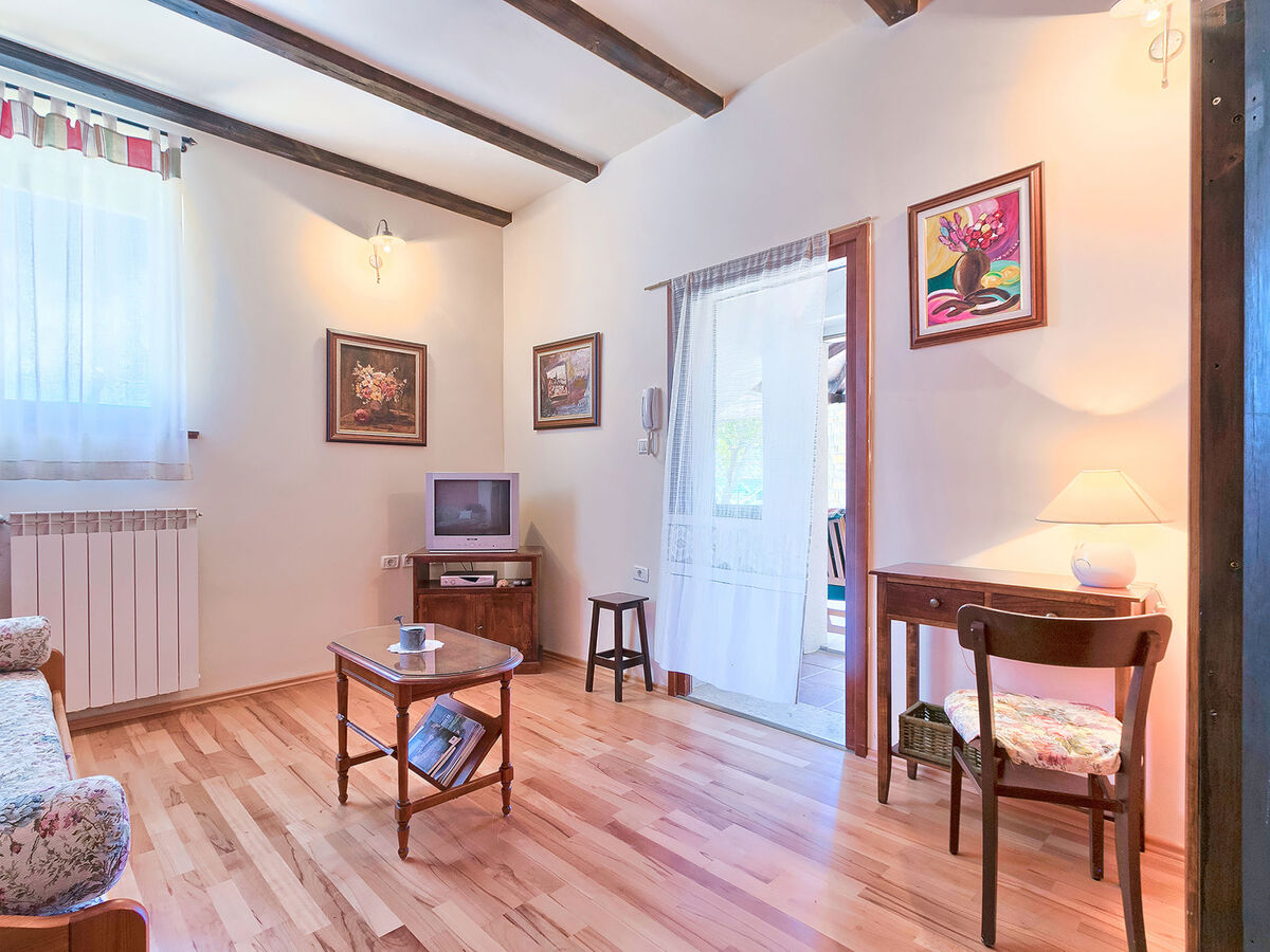 Séjour/salle à manger avec coin-cuisine et TV (satellite).