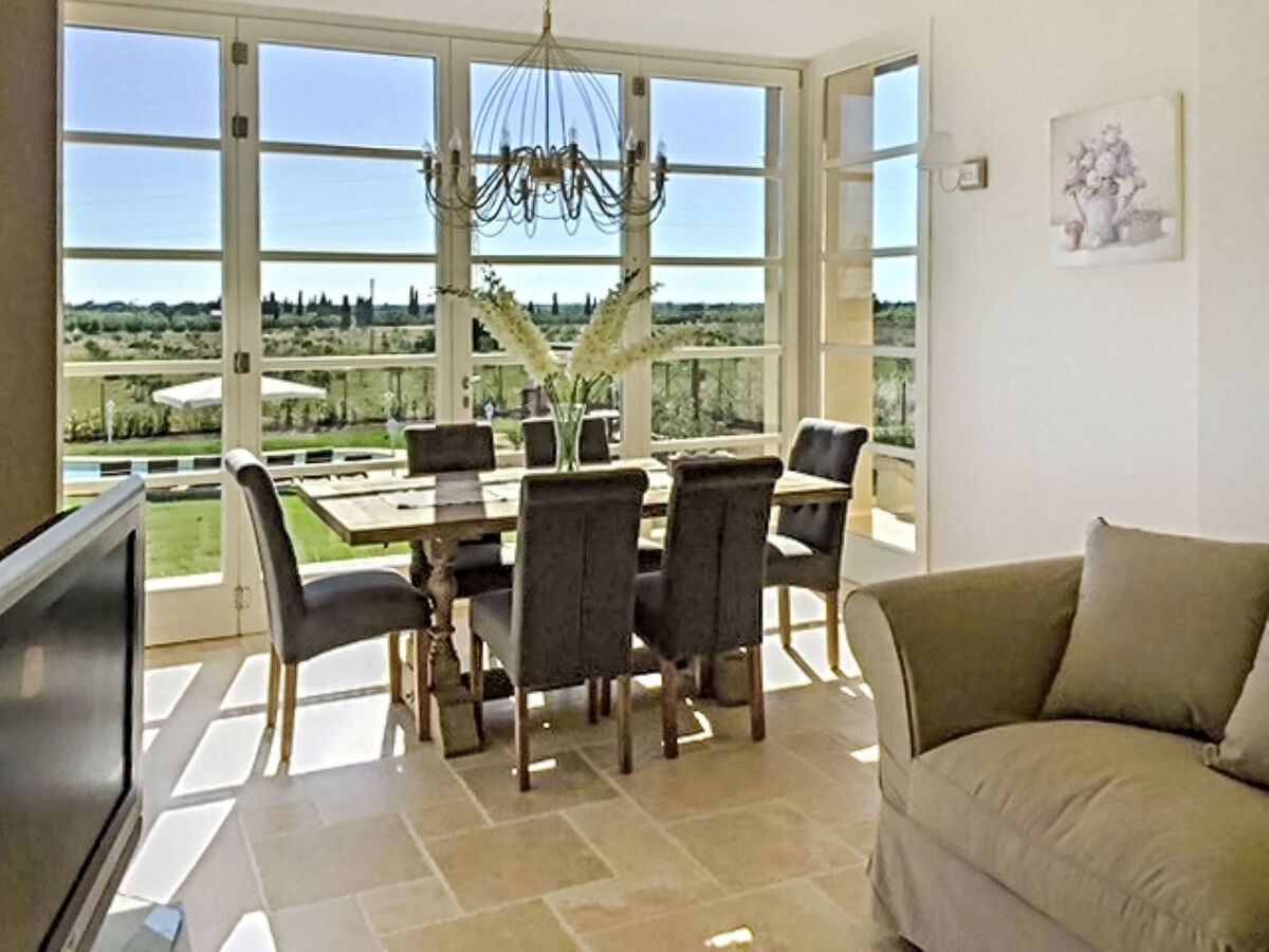 Spacieux, aménagement confortable et de bon goût: séjour/salle à manger avec baie vitrée avec 1 divan-lit double, table pour les repas et air-conditionné.