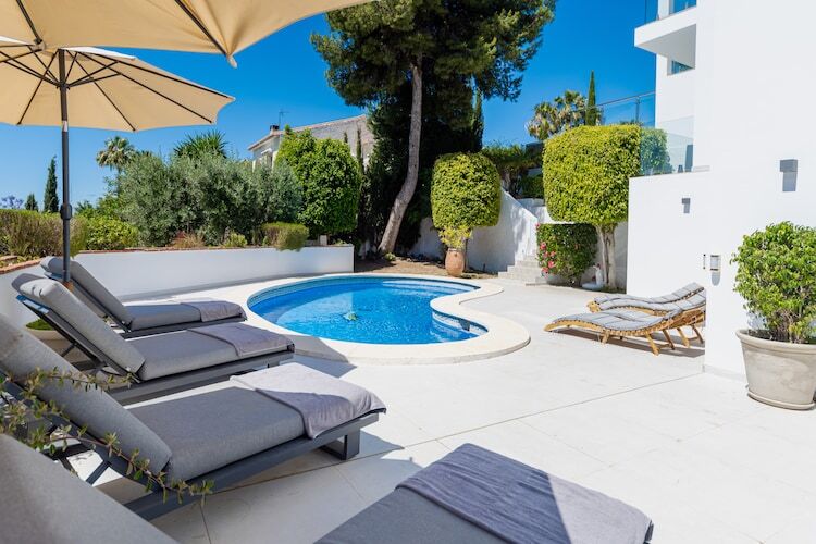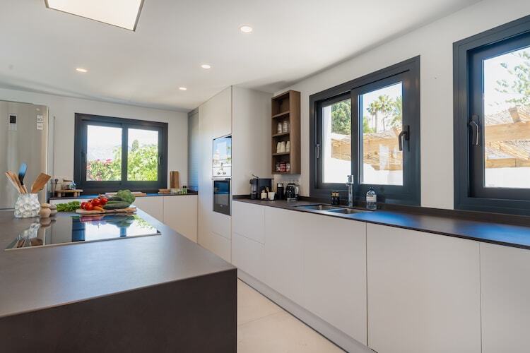 Située dans la banlieue paisible d'El Rosario à Marbella, sur la Costa del Sol espagnole, cette villa de cinq chambres peut accueillir jusqu'à dix personnes à quelques minutes des plages de sable et des attractions côtières. Entourée de jardins paysagers offrant une vue panoramique sur la Méditerranée, elle allie des intérieurs élégants à de généreux espaces extérieurs – idéale pour les familles ou les groupes recherchant le confort à proximité du centre animé de Marbella.