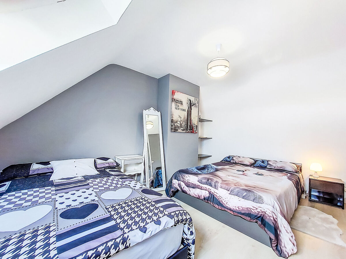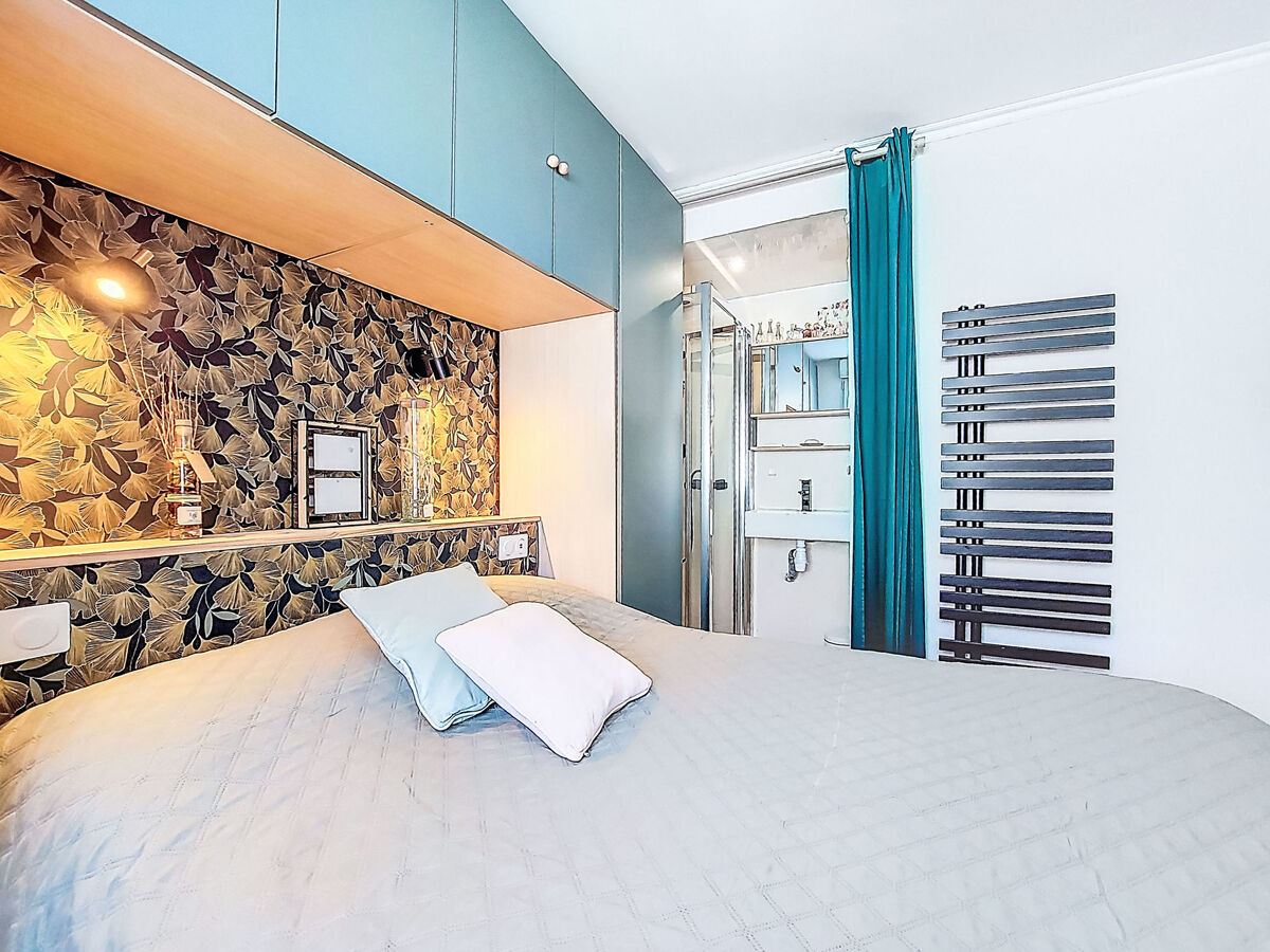 1 chambre avec 1 grand-lit (140 cm, longueur 190 cm), douche.