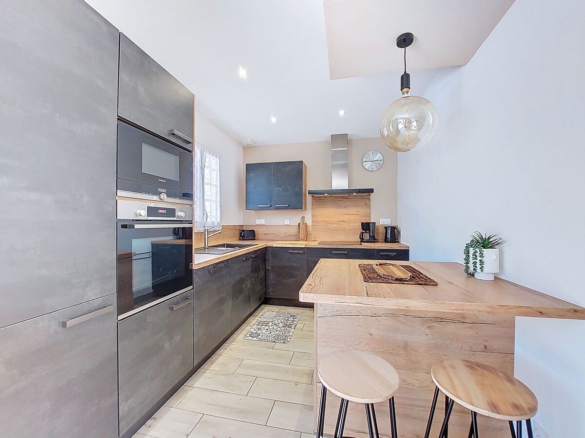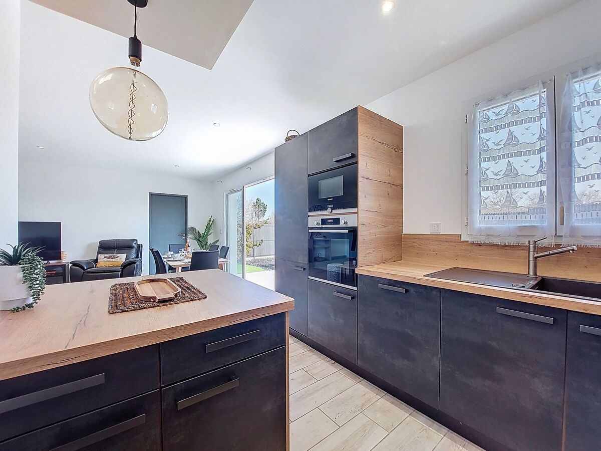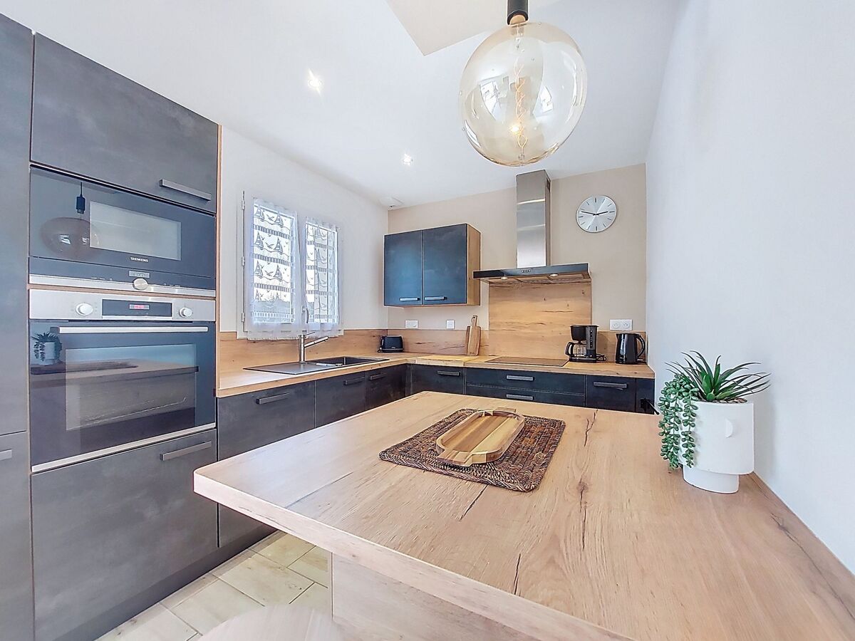 Cuisine ouverte (four, lave-vaisselle, 3 plaques à induction, grille-pain, bouilloire électrique, micro-ondes, congélateur, cafetière électrique).